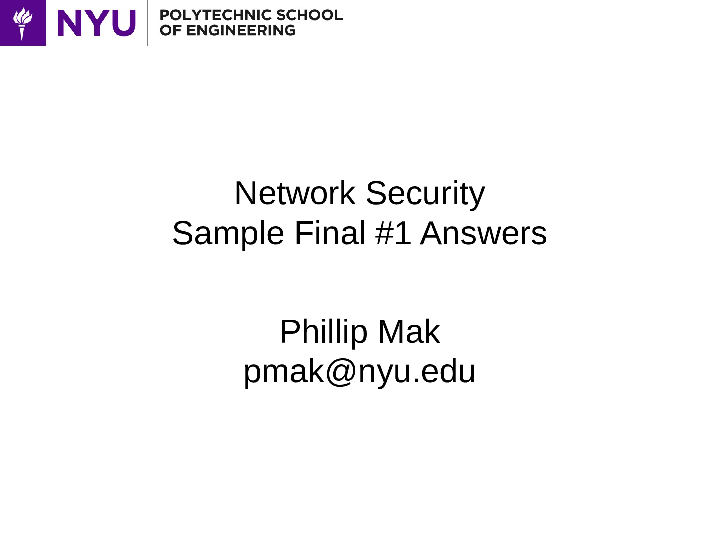 Programming > QUESTIONS & ANSWERS > New York University CSCI-SHU MISC Introduction to Programming and Problem Solving . CS6823+Sample Final_1 AnswersNetwork Security Sample Final #1 Answers (All)