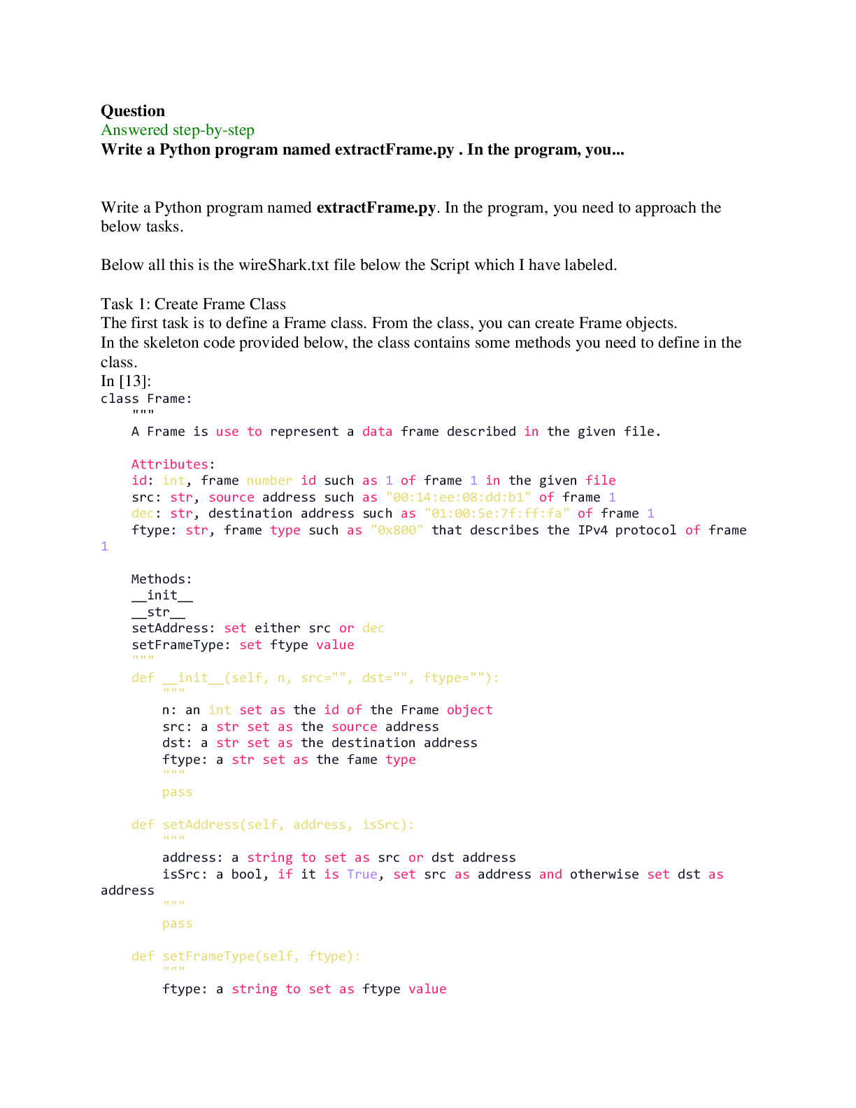 Programming > QUESTIONS & ANSWERS > University Of Arizona CYBV CYBV 480 Write a Python program named extractFrame.py . In the program, you... (All)