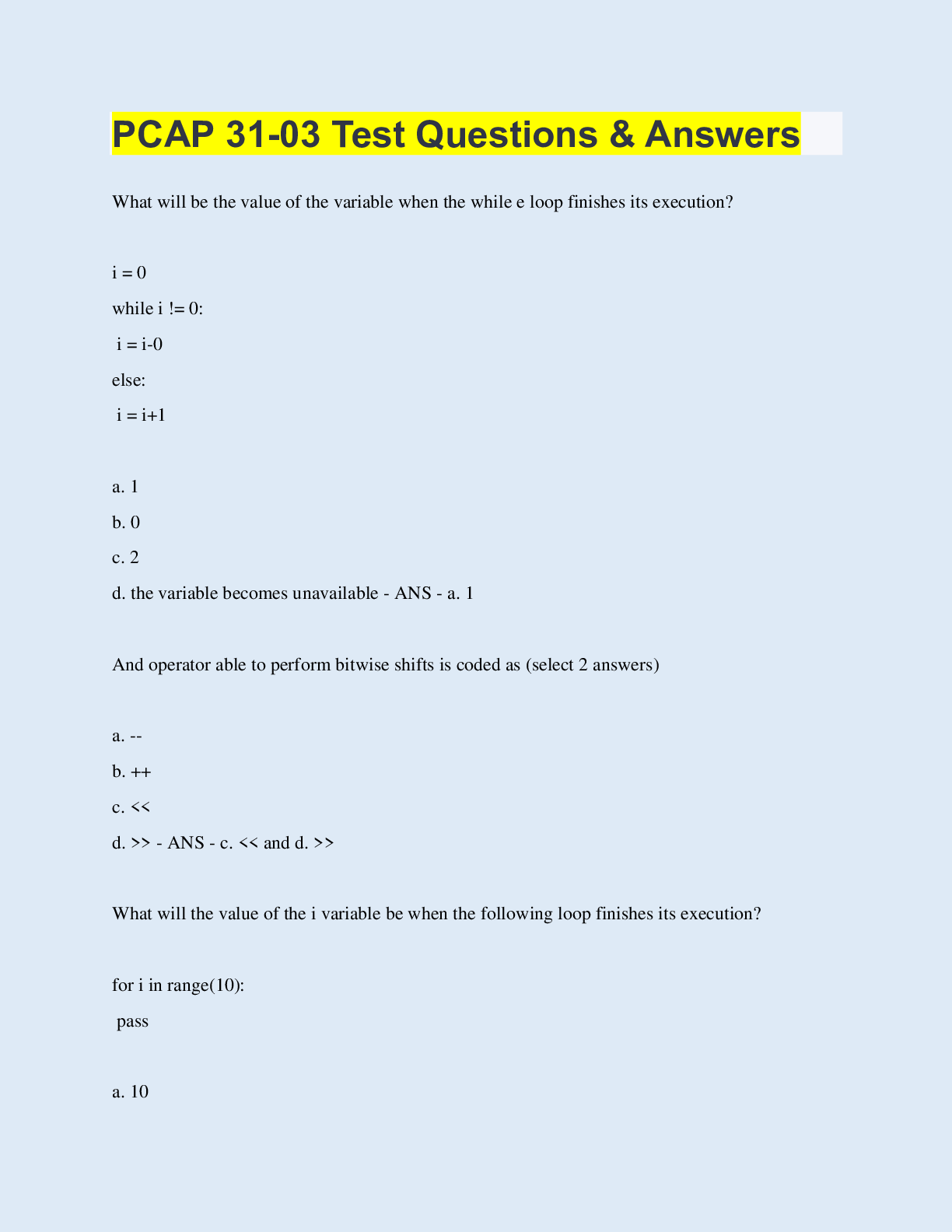 Programming > QUESTIONS & ANSWERS > PCAP 31-03 Test Questions & Answers (All)