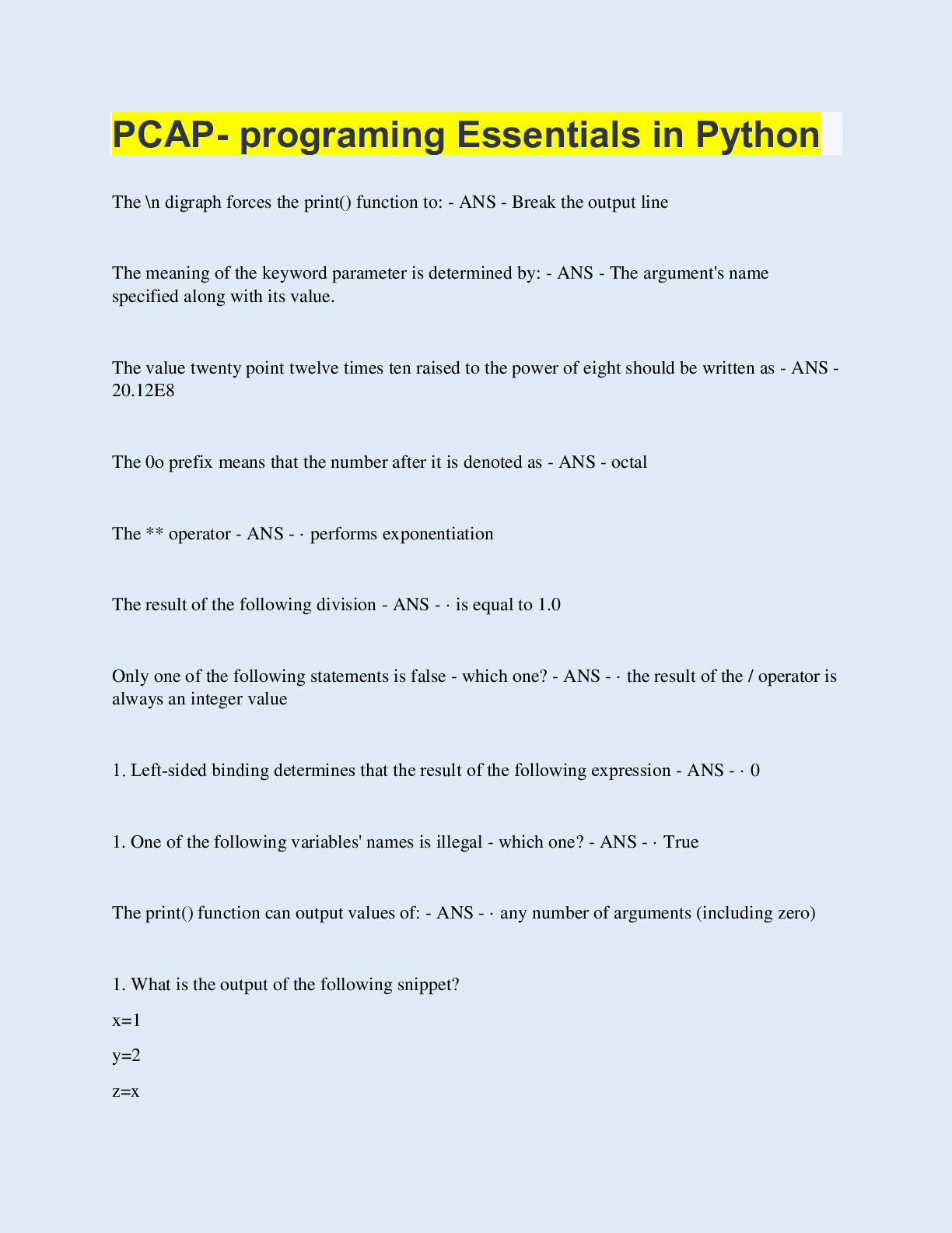 Programming > QUESTIONS & ANSWERS > PCAP- programing Essentials in Python (All)
