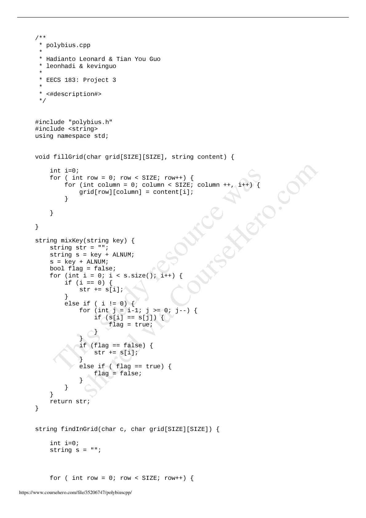 Programming > STUDY GUIDE > polybius. University of Michigan - EECS 183 (All)