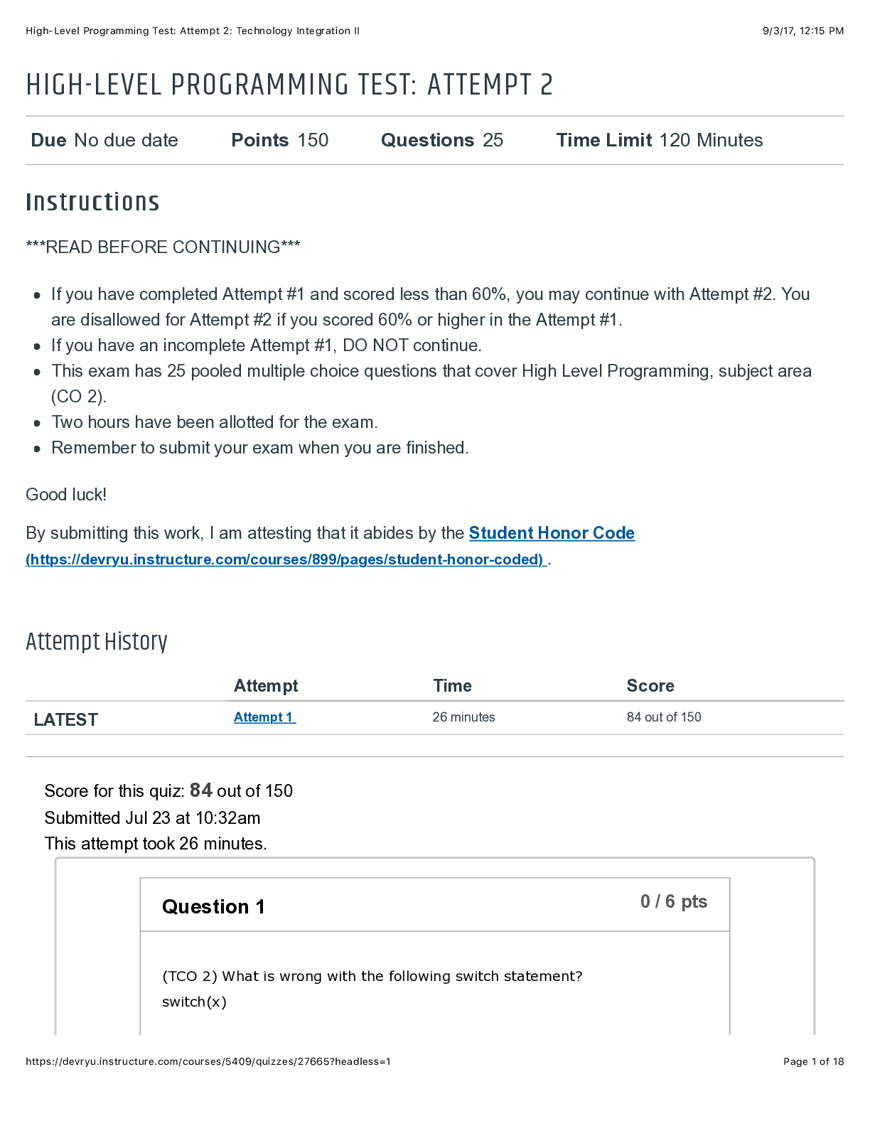 Programming > QUESTIONS & ANSWERS > High-Level Programming Test: Attempt 2: Technology Integration Latest 2021/2022 (All)