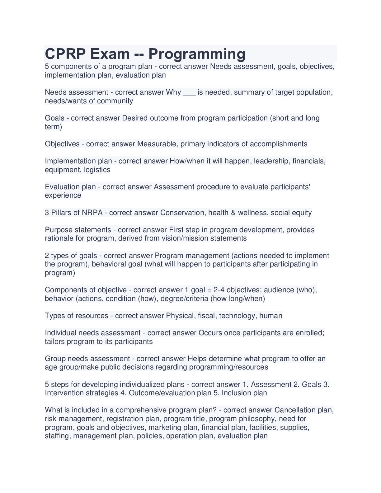 Here are the best study resources to pass Programming. Find Programming study guides, notes, assignments, and much more.