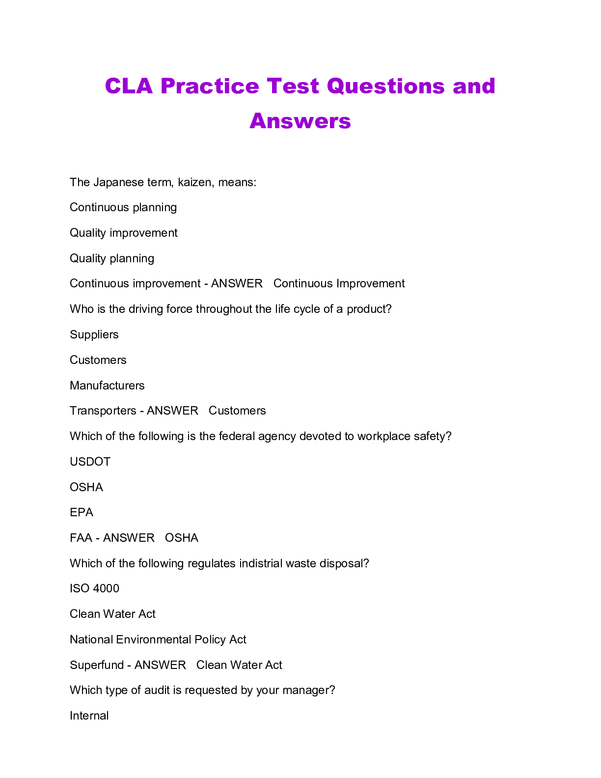 Programming > QUESTIONS & ANSWERS > CLA Practice Test Questions and Answers, 2022/2023. Graded A+ (All)