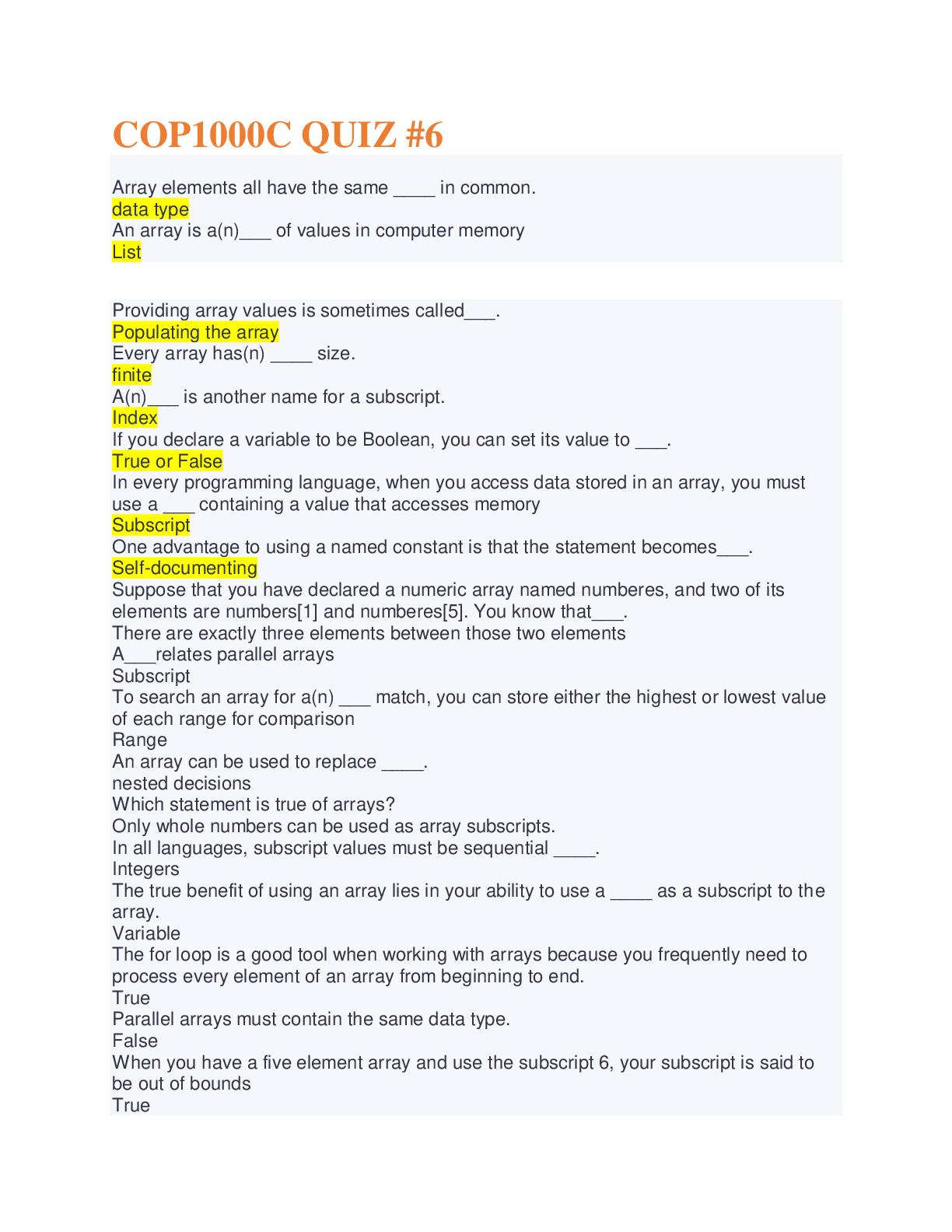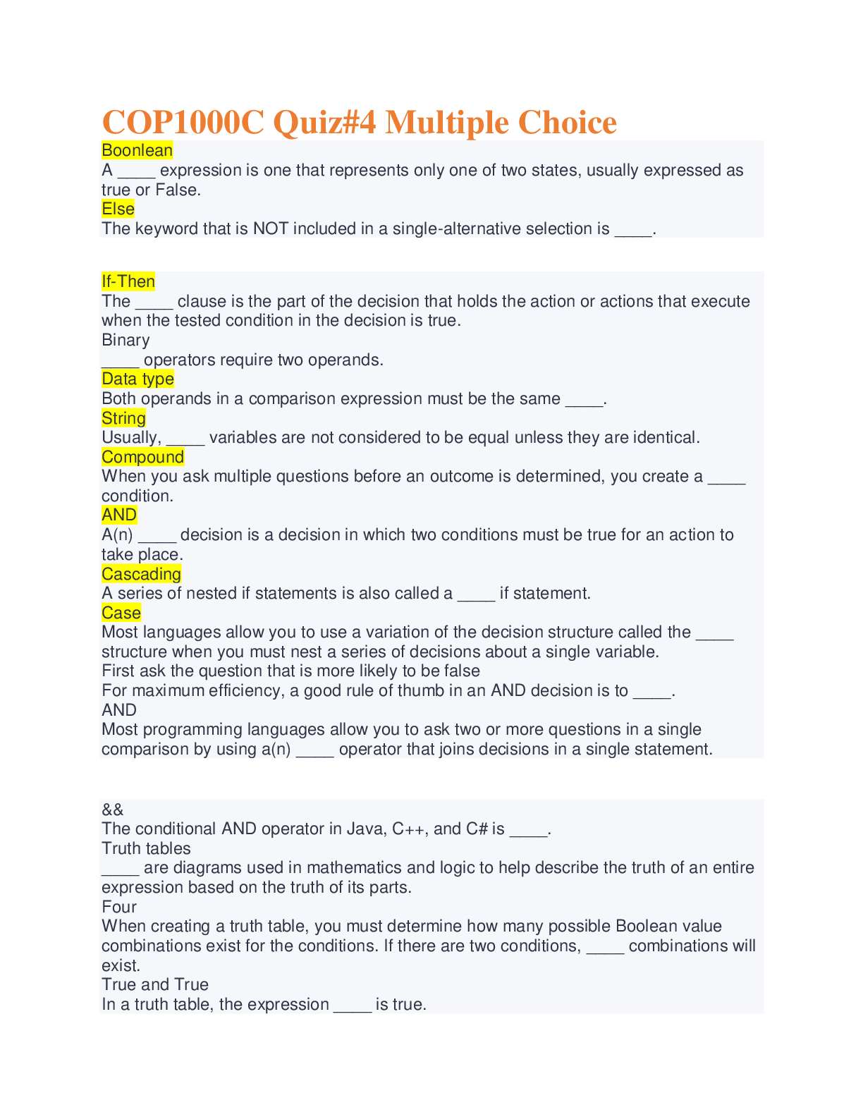 Programming > EXAM > COP1000C Quiz#4 Multiple Choice with Answers Upfront (All)