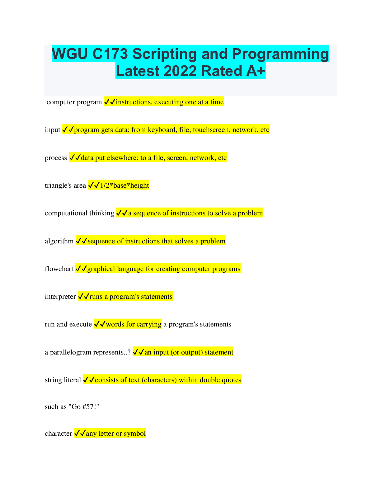 Programming > QUESTIONS & ANSWERS > WGU C173 Scripting and Programming Latest 2022 Rated A+ (All)