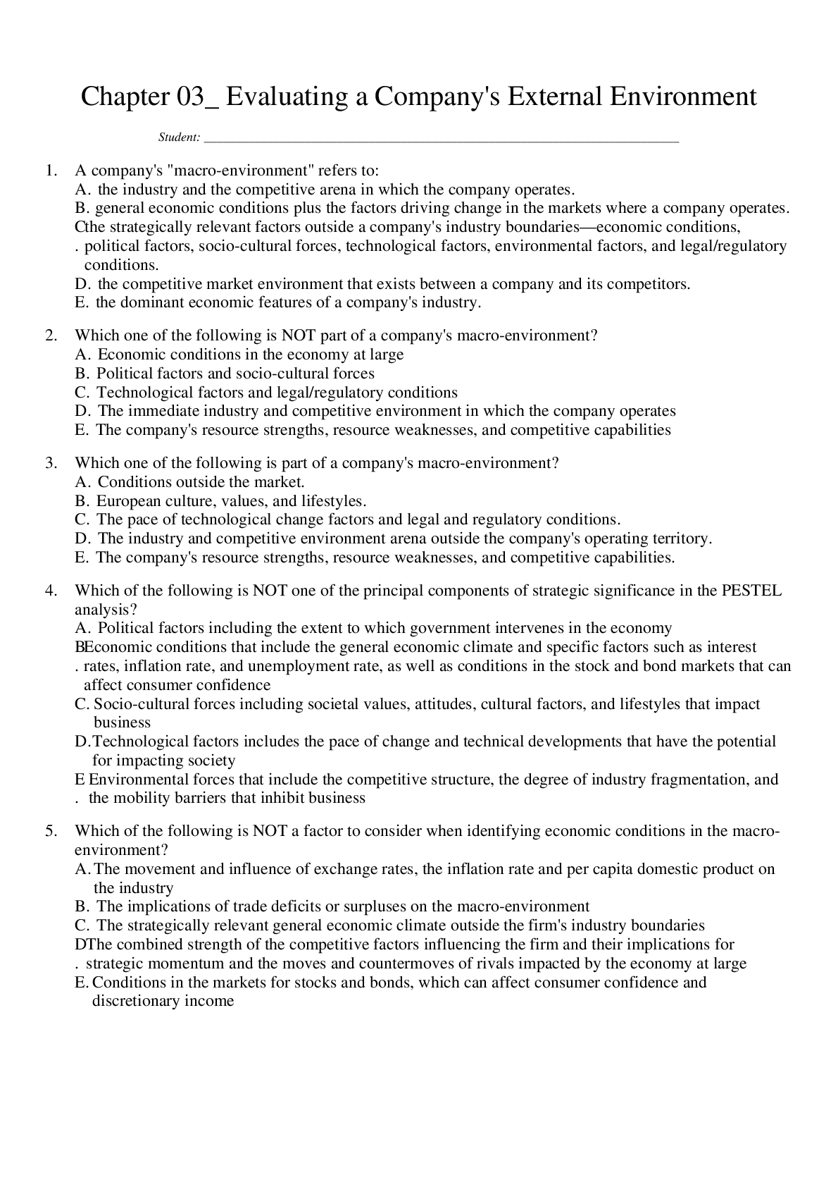 Microeconomics > TEST BANKS > Evaluating a Company's External Environment Test Bank (All)