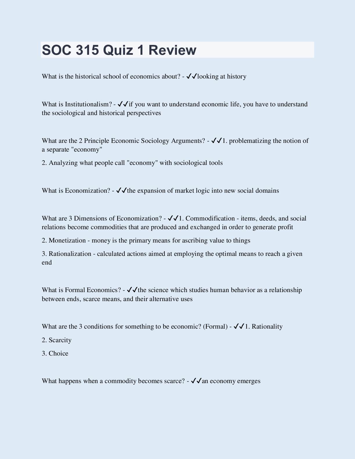 Social Sciences > Quiz > SOC 315 Quiz 1 Review | 35 Questions with 100% Correct Answers | Updated & Verified (All)