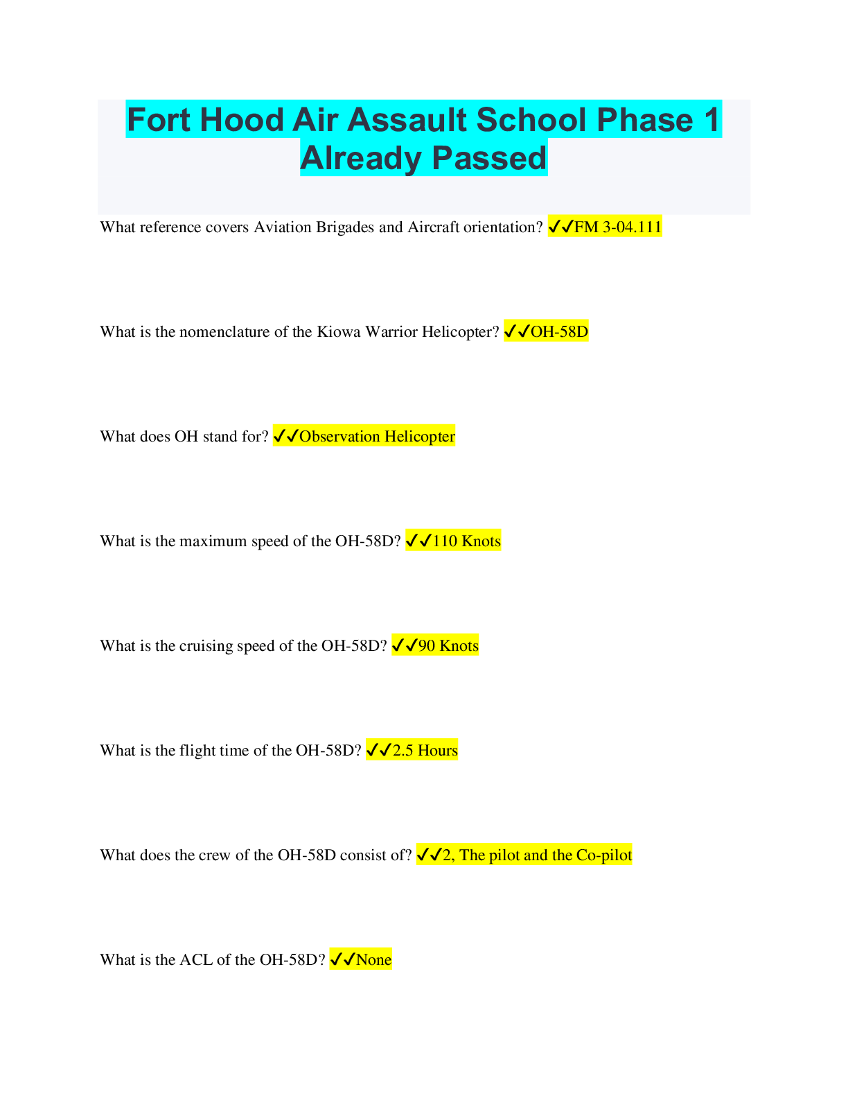 Social Sciences > QUESTIONS & ANSWERS > Fort Hood Air Assault School Phase 1 Already Passed (All)