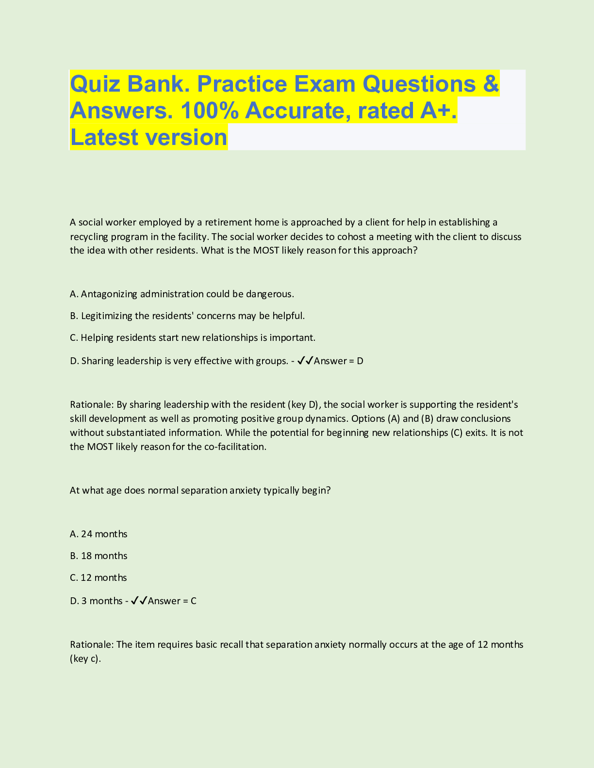 Social Sciences > QUESTIONS & ANSWERS > Quiz Bank. Practice Exam Questions & Answers. 100% Accurate, rated A+. Latest version (All)