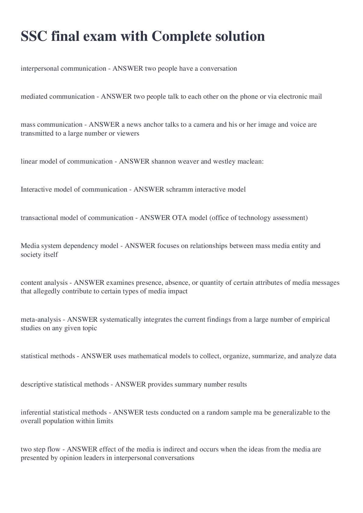 Social Sciences > EXAM > SSC final exam with Complete solution (All)