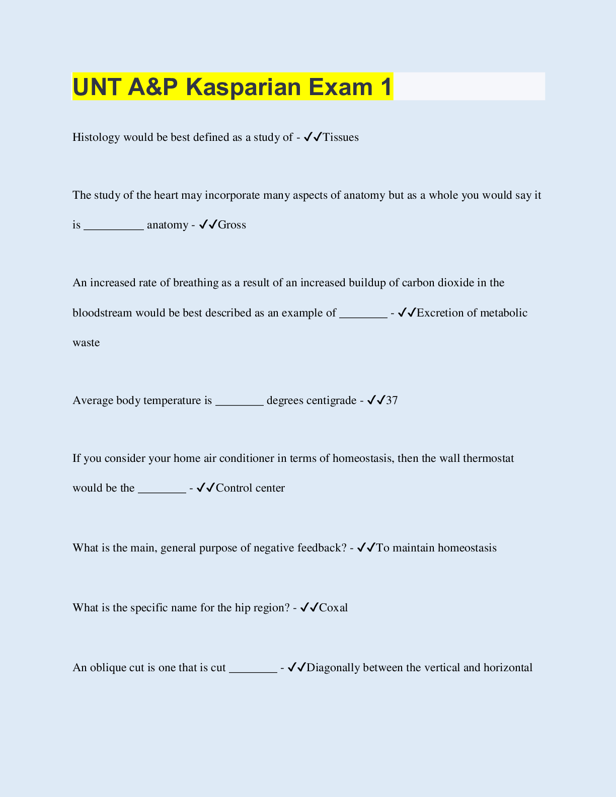 Social Sciences > QUESTIONS & ANSWERS > UNT A&P Kasparian Exam 1 (All)