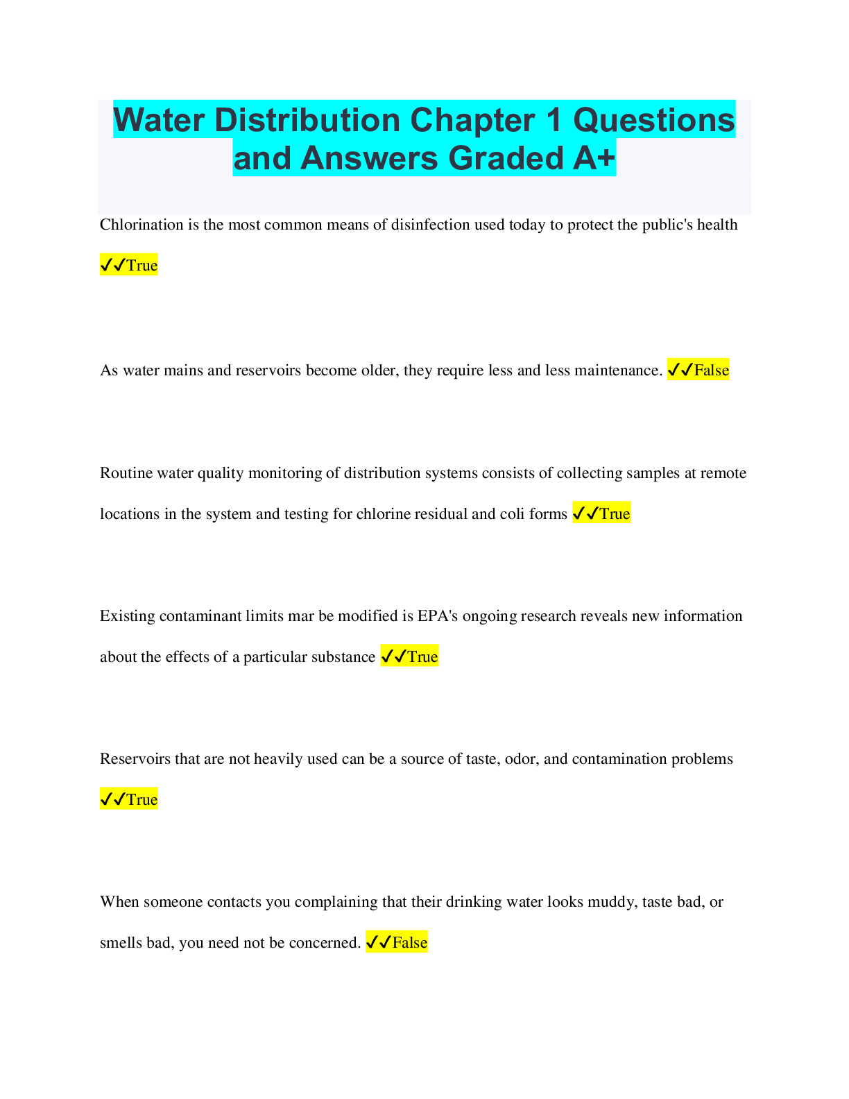 Social Sciences > QUESTIONS & ANSWERS > Water Distribution Chapter 1 Questions and Answers Graded A+ (All)
