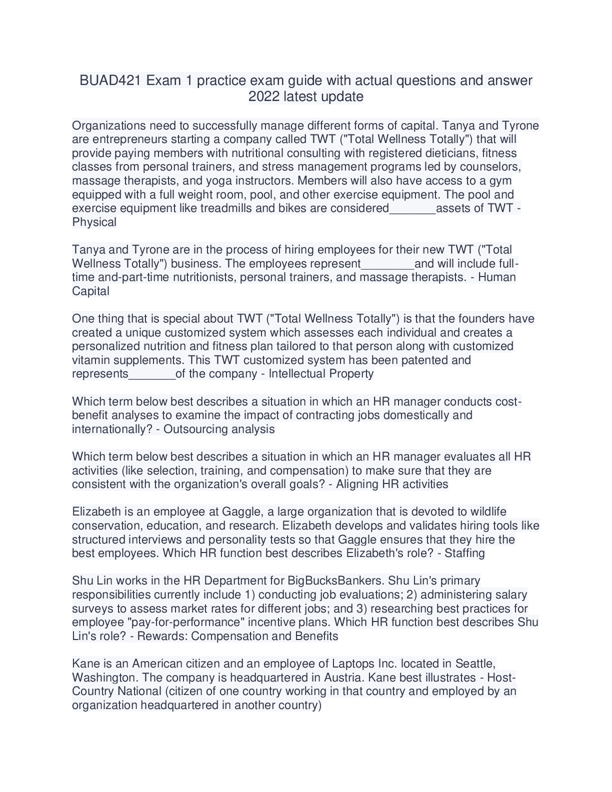 Social Sciences > EXAM > BUAD421 Exam 1 practice exam guide with actual questions and answer 2022 latest update (All)