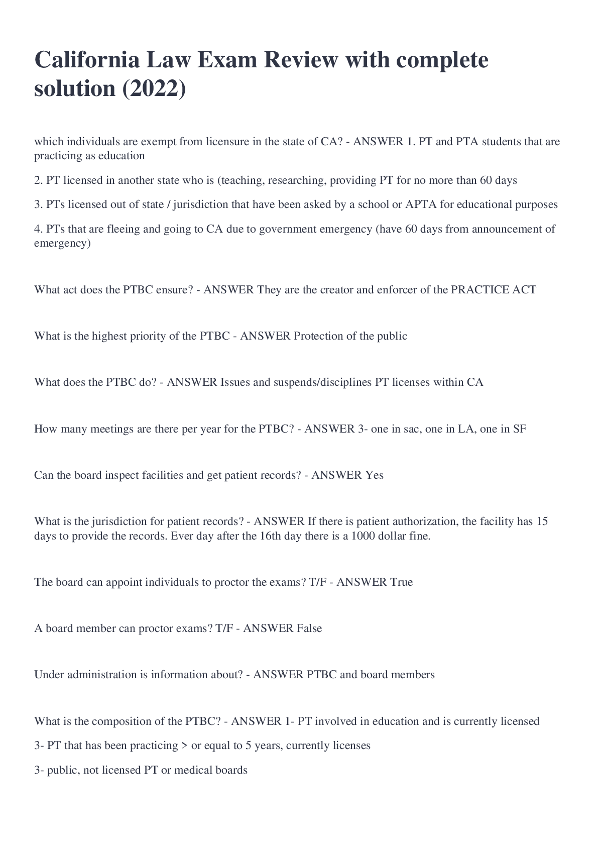 Social Sciences > EXAM > California Law Exam Review with complete solution (2022) (All)