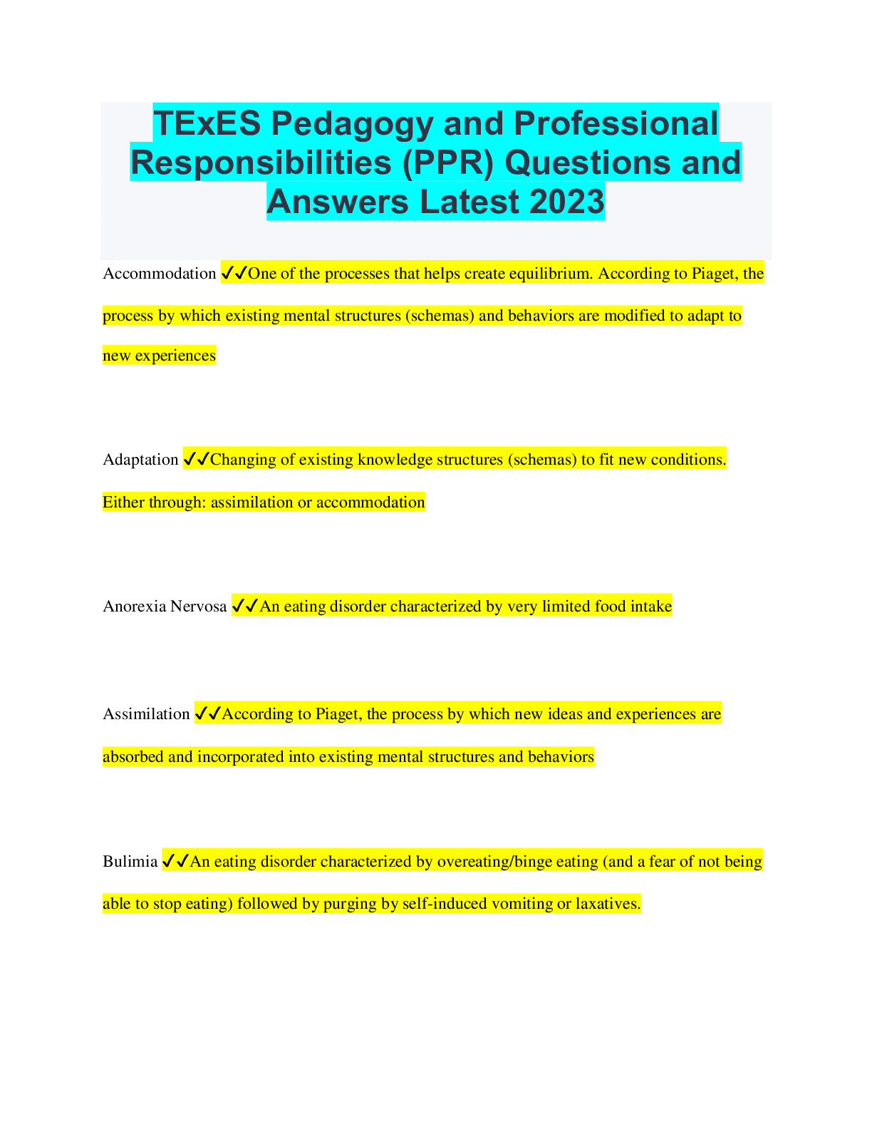 Social Sciences > QUESTIONS & ANSWERS > TExES Pedagogy and Professional Responsibilities (PPR) Questions and Answers Latest 2023 (All)