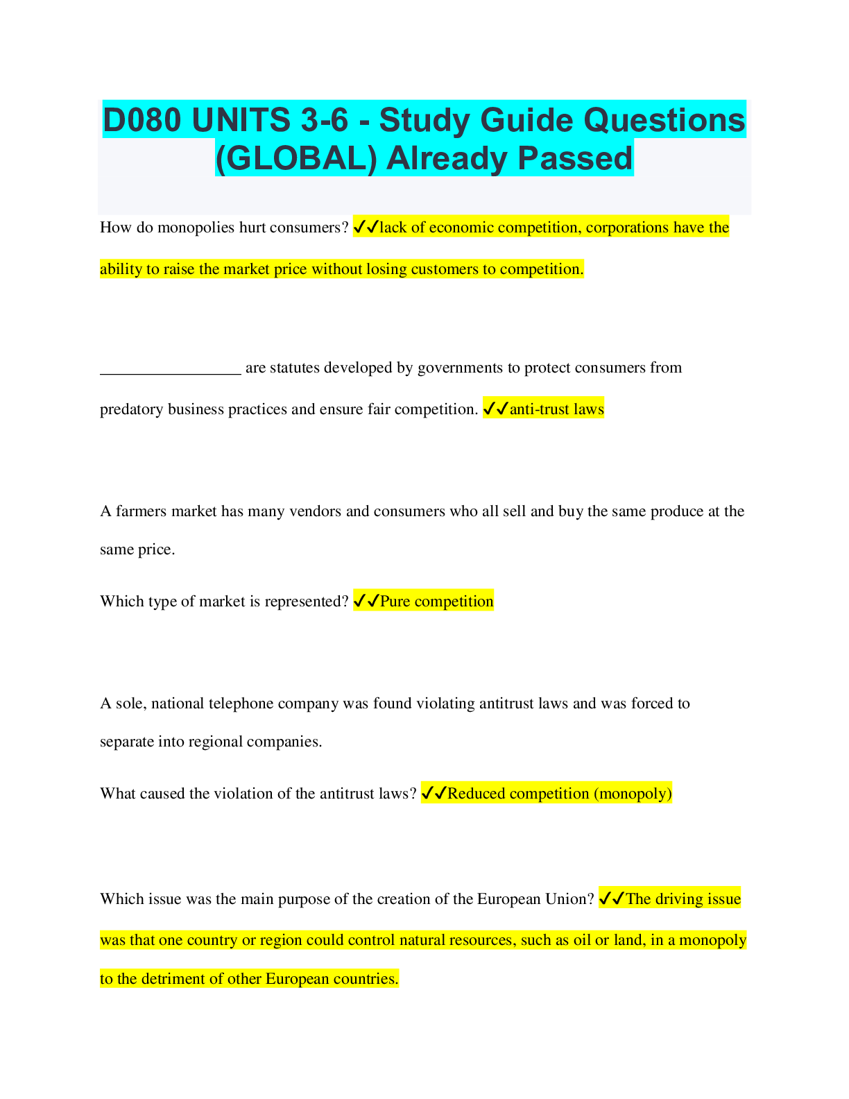 Social Sciences > QUESTIONS & ANSWERS > D080 UNITS 3-6 - Study Guide Questions (GLOBAL) Already Passed (All)