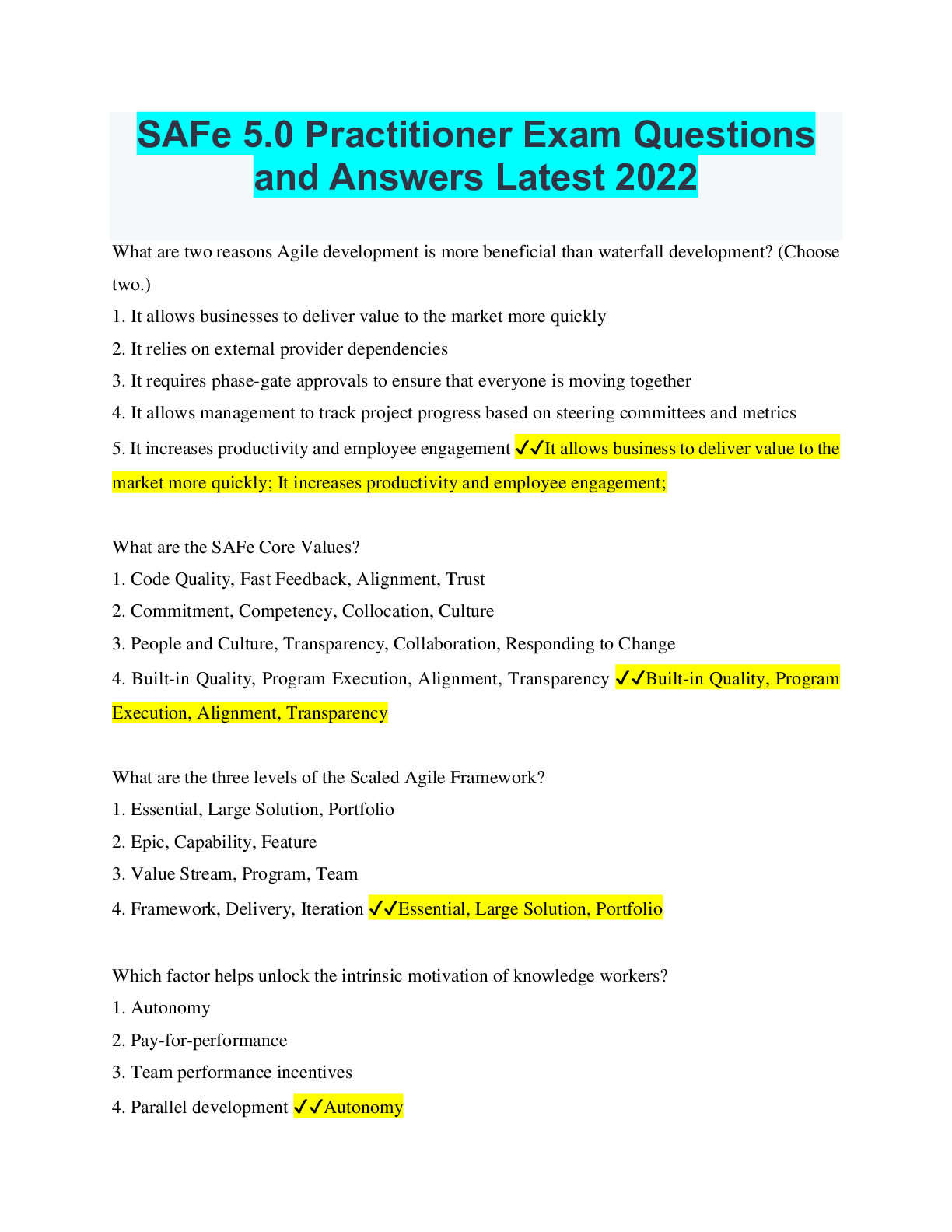 Social Sciences > EXAM > SAFe 5.0 Practitioner Exam Questions and Answers Latest 2022 (All)