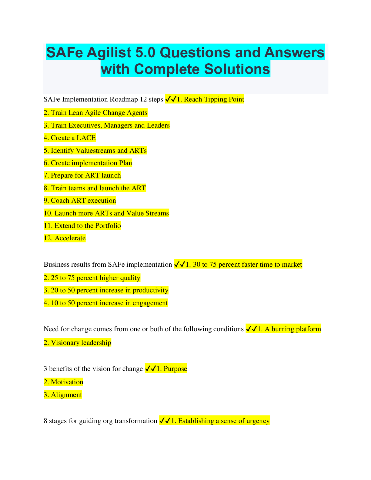 Social Sciences > EXAM > SAFe Agilist 5.0 Questions and Answers with Complete Solutions (All)