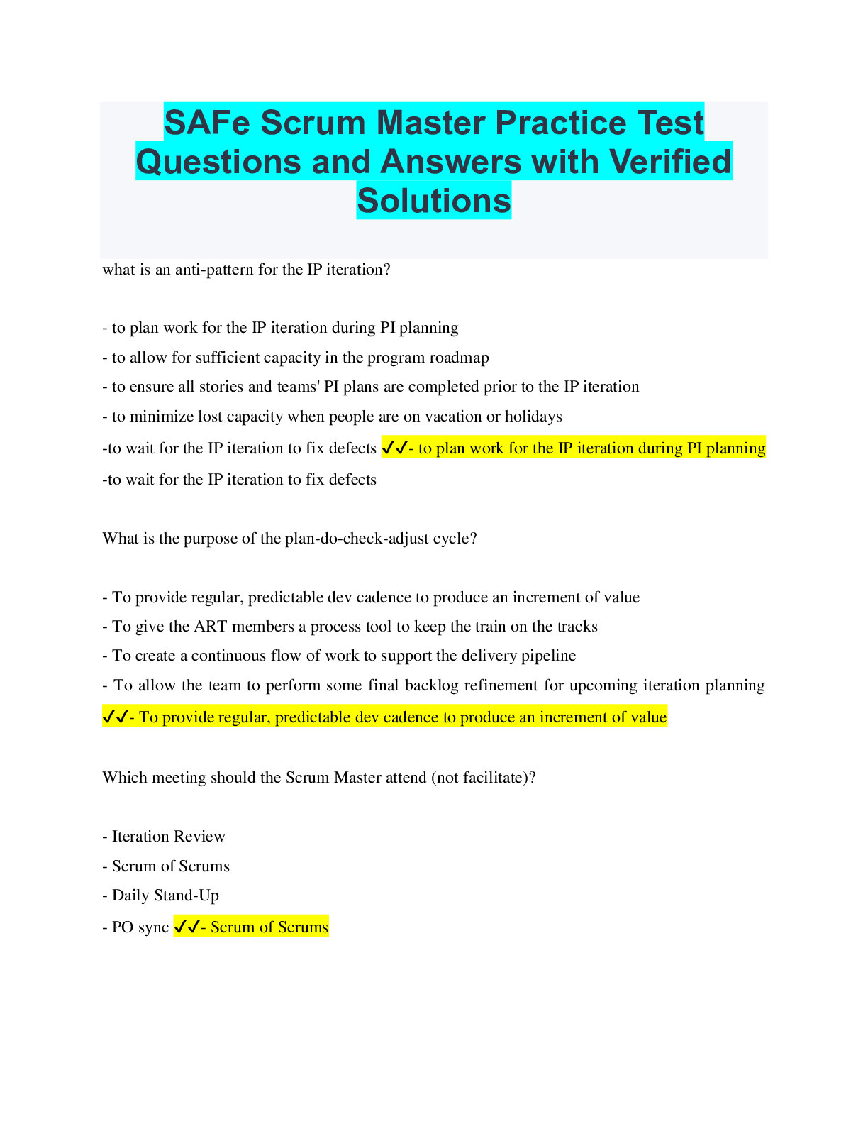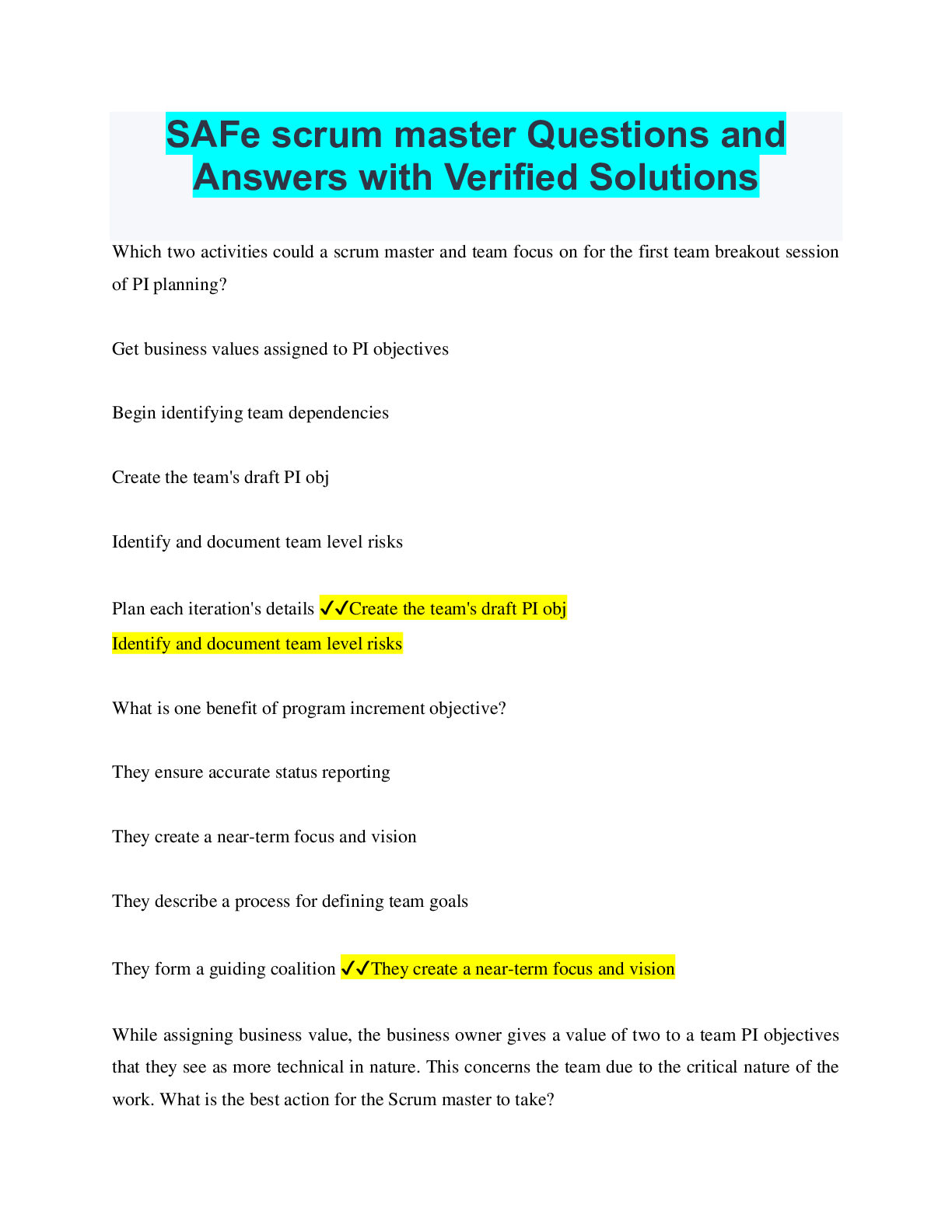 Social Sciences > EXAM > SAFe Scrum Master Exam Questions and Answers with Verified Solutions (All)