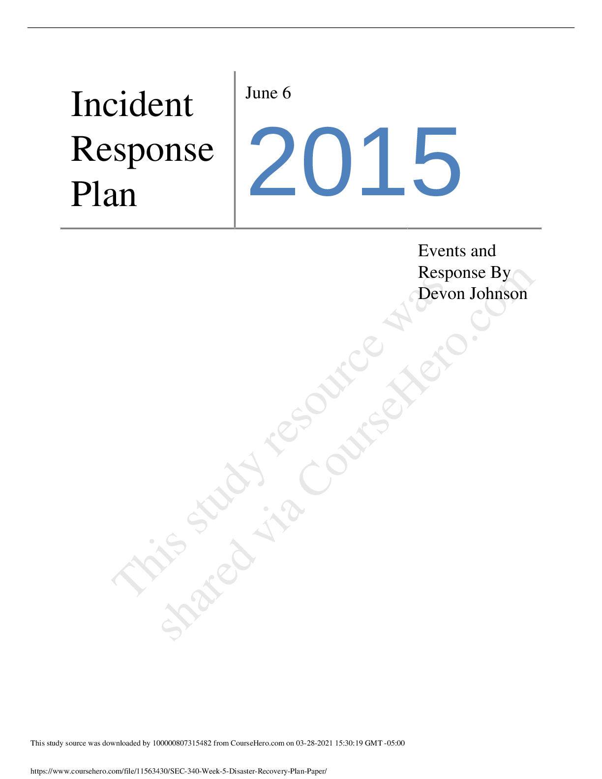 Social Sciences > EXAM > SEC 340 Week 5 Disaster Recovery Plan Paper (All)