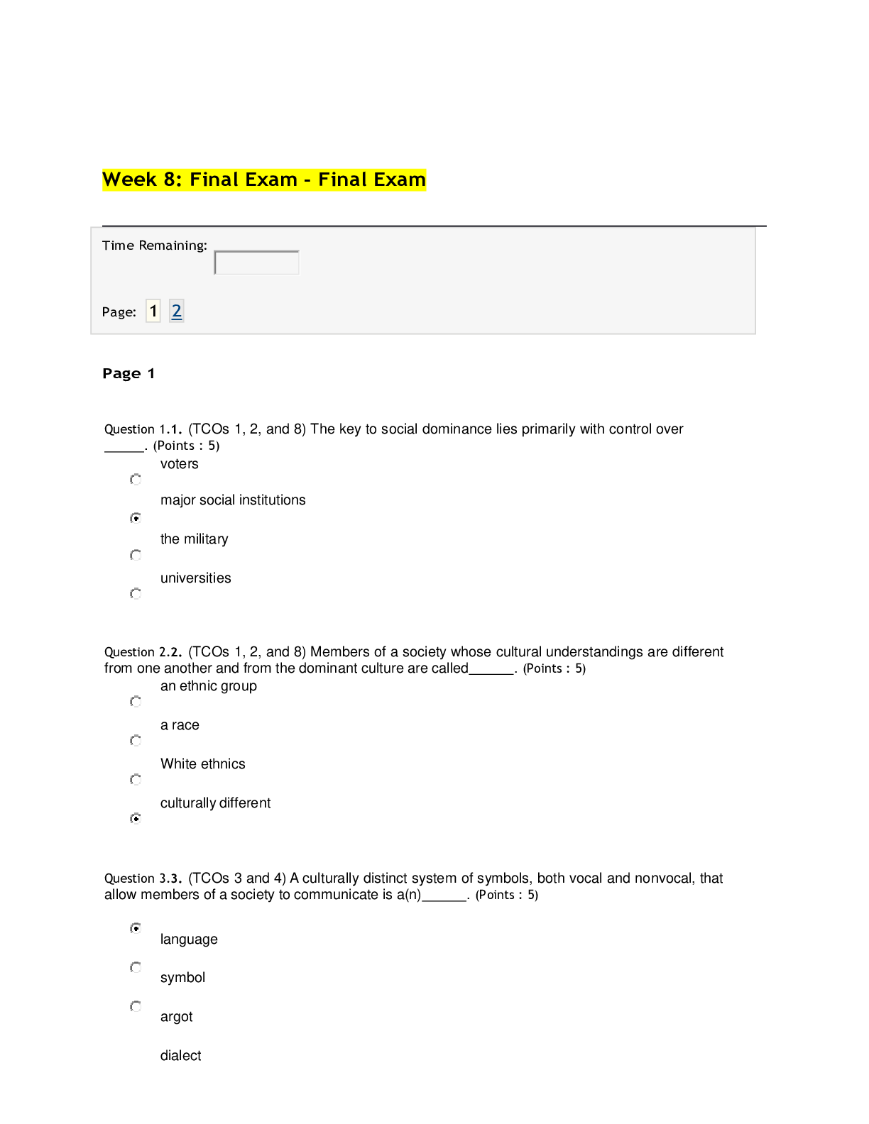 Social Sciences > EXAM > Chamberlain College of Nursing SOCS350 _ SOCS 350 Final Exam with Answers graded (All)