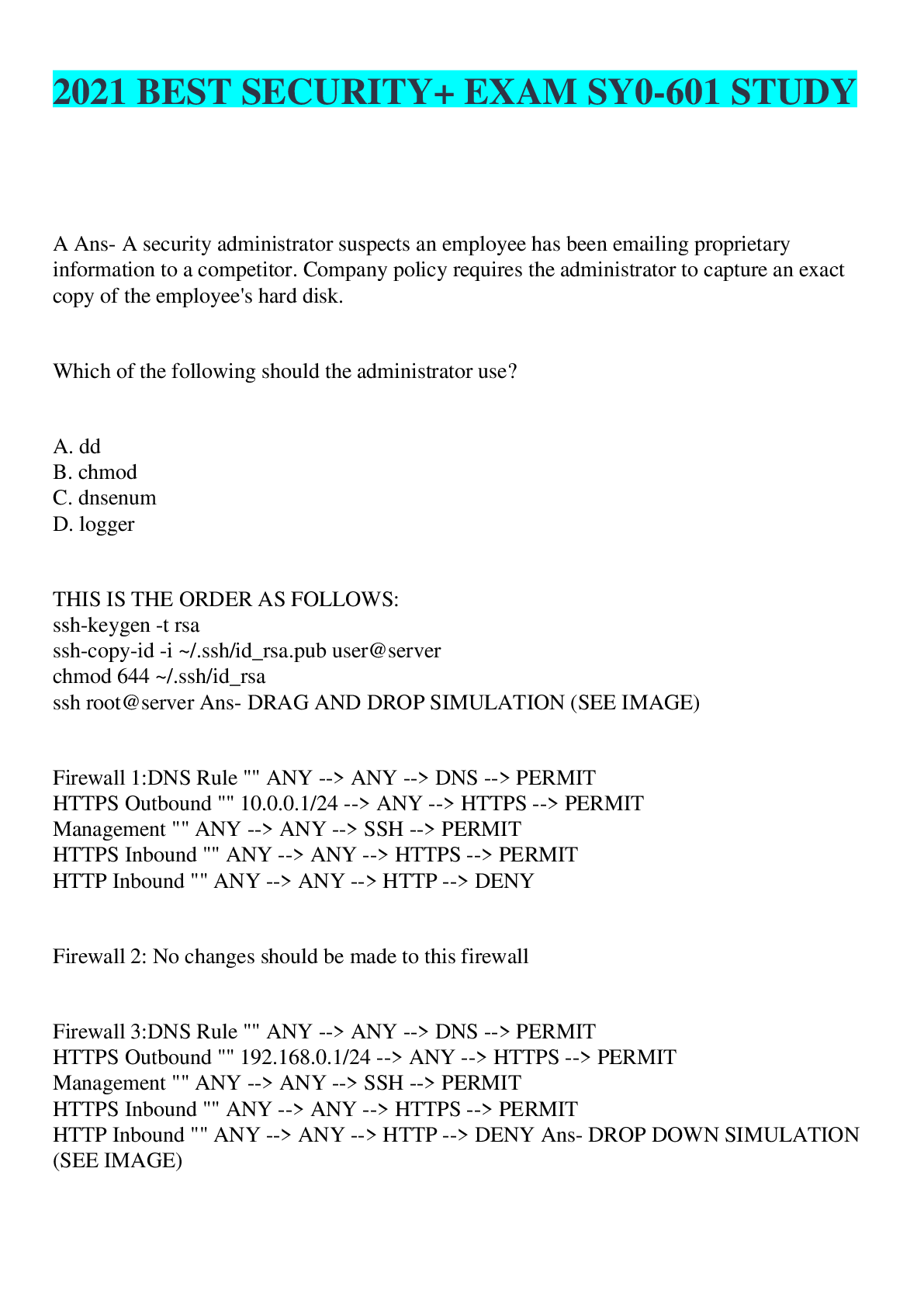 Social Sciences > EXAM > 2021 BEST SECURITY+ EXAM SY0-601 STUDY (All)