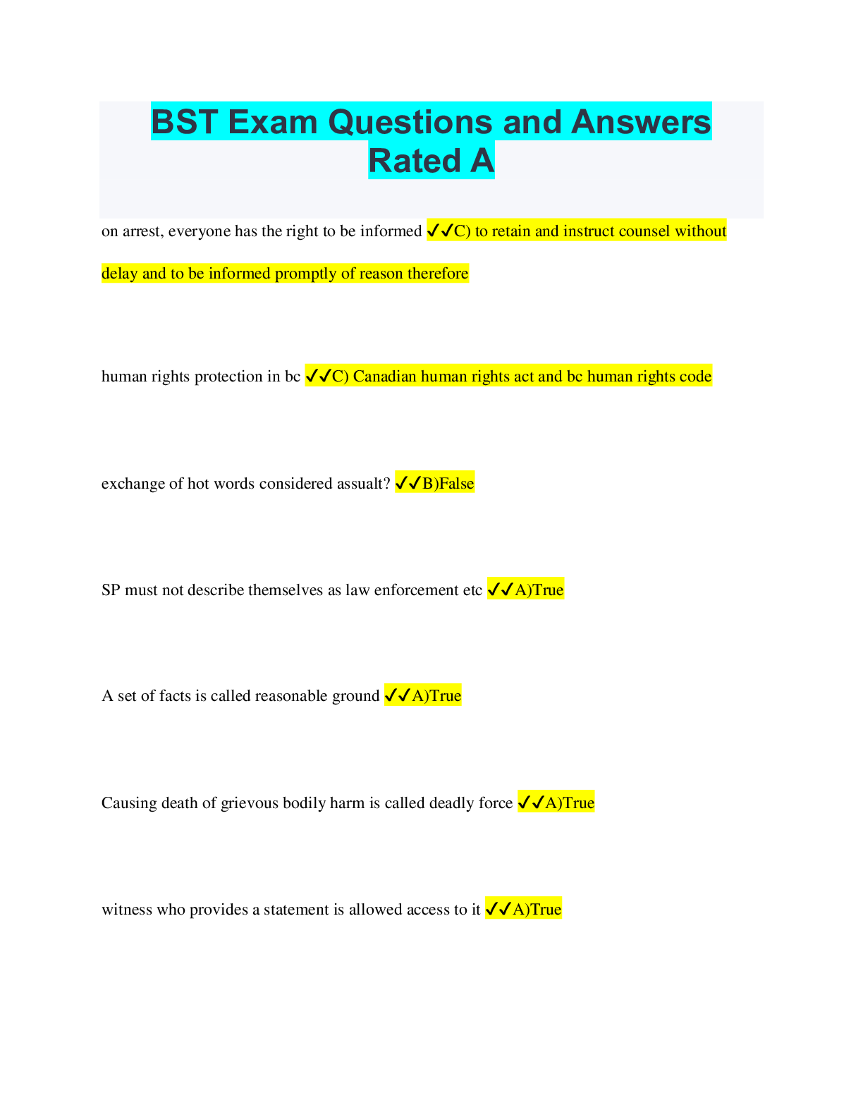 Social Sciences > QUESTIONS & ANSWERS > BST Exam Questions and Answers Rated A (All)