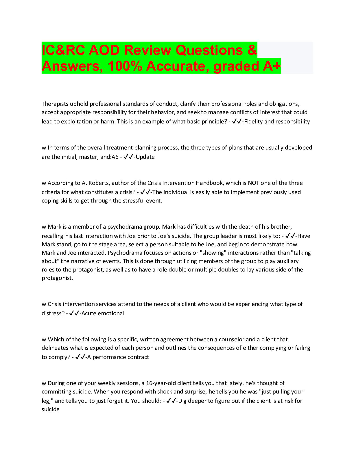 Social Sciences > QUESTIONS & ANSWERS > IC&RC AOD Review Questions & Answers, 100% Accurate, graded A+ (All)