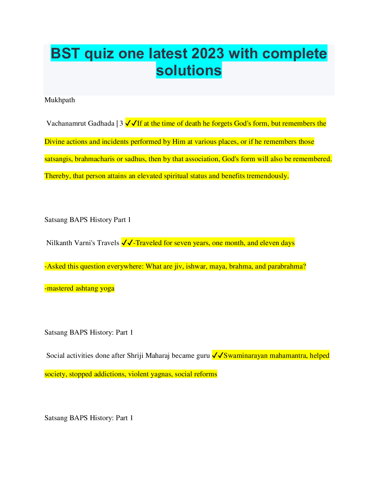 Social Sciences > QUESTIONS & ANSWERS > BST quiz one latest 2023 with complete solutions (All)