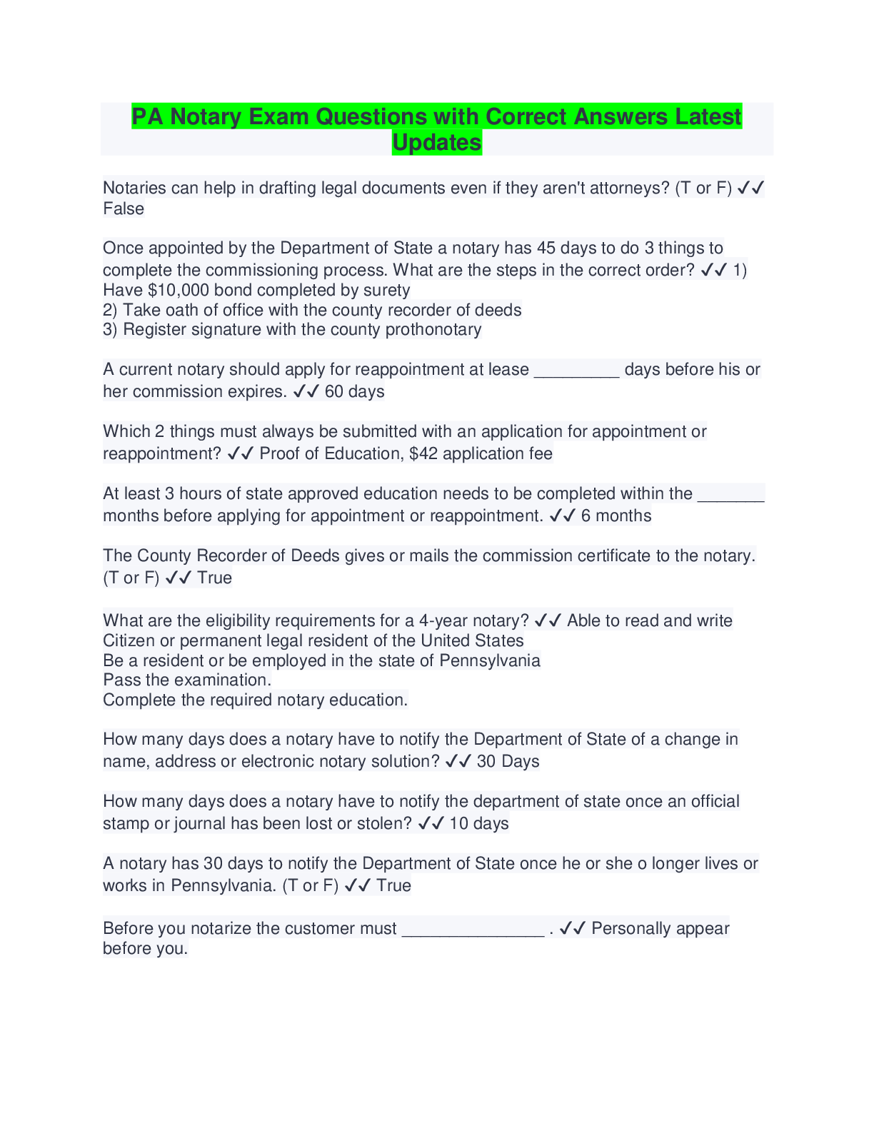 Social Sciences > QUESTIONS & ANSWERS > PA Notary Exam Questions with Correct Answers Latest Updates (All)