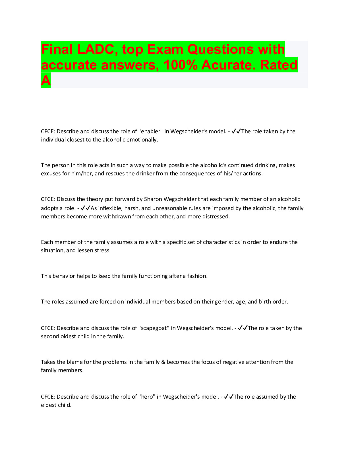 Social Sciences > QUESTIONS & ANSWERS > Final LADC, top Exam Questions with accurate answers, 100% Acurate. Rated A (All)