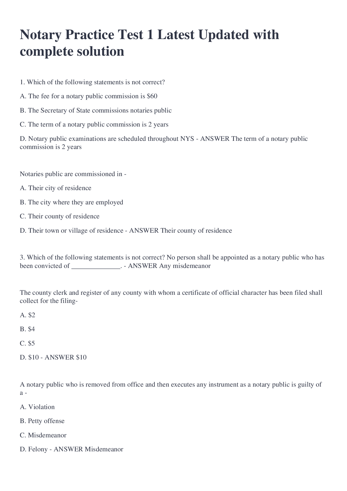 Social Sciences > EXAM > Notary Practice Test 1 Latest Updated with complete solution (All)