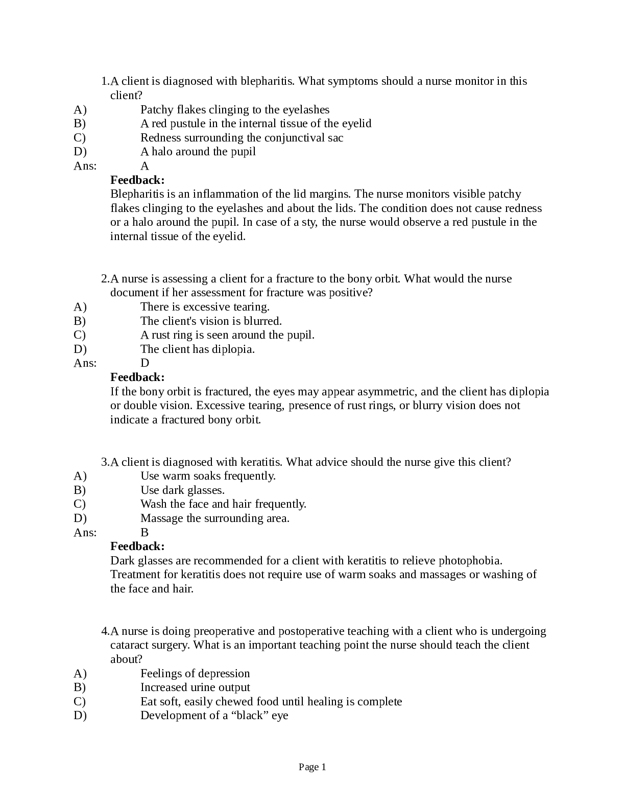 Social Sciences > QUESTIONS & ANSWERS > NSG 210 Caring for Clients With Eye Disorders practice exam questions and answers solution 100% complete with feedback (All)