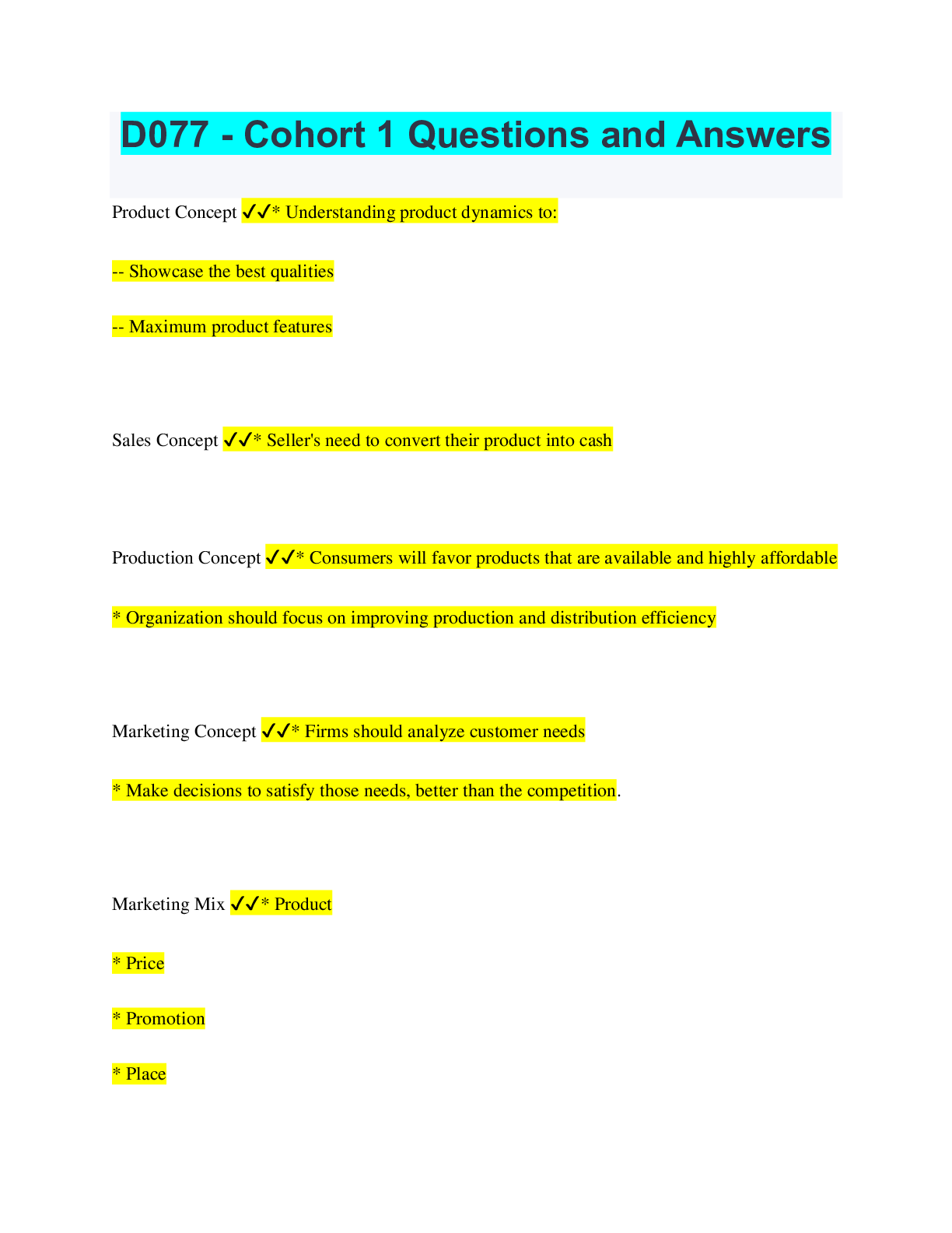Social Sciences > QUESTIONS & ANSWERS > D077 - Cohort 1 Questions and Answers (All)