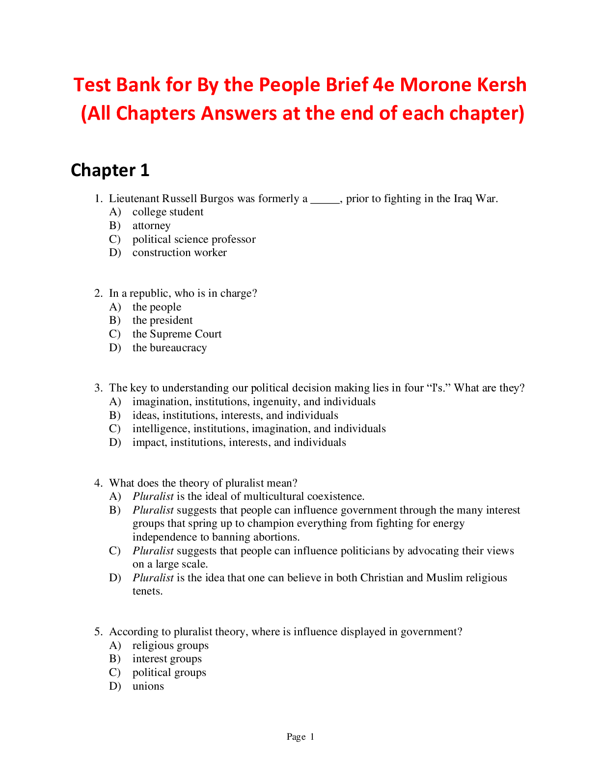 Social Sciences > TEST BANKS > By the People Brief 4e Morone Kersh (Test Bank) (All)