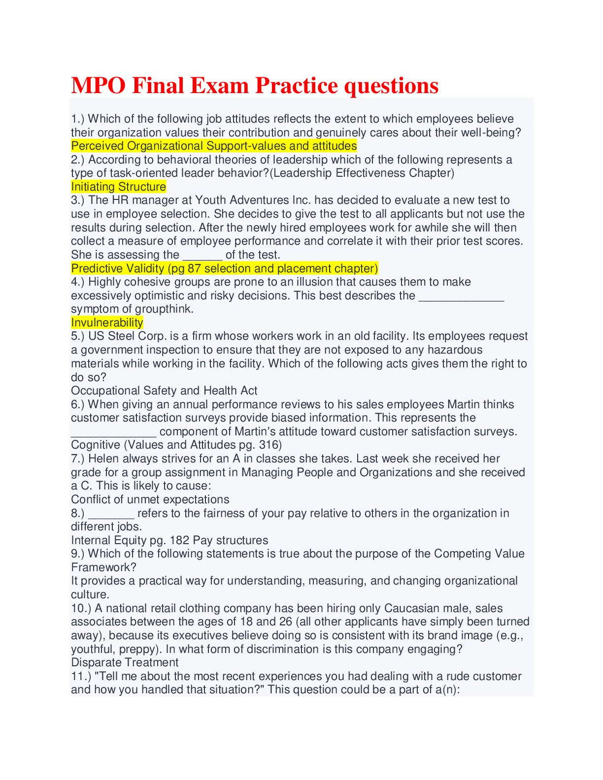 Social Sciences > EXAM > MPO Final Exam Practice questions with Verified Answers/Graded A+ (All)