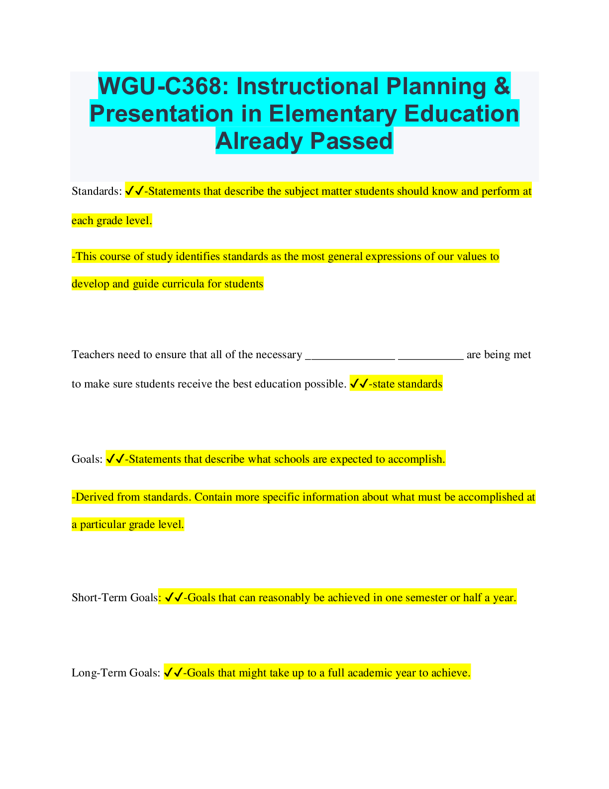 Social Sciences > QUESTIONS & ANSWERS > WGU-C368: Instructional Planning & Presentation in Elementary Education Already Passed (All)