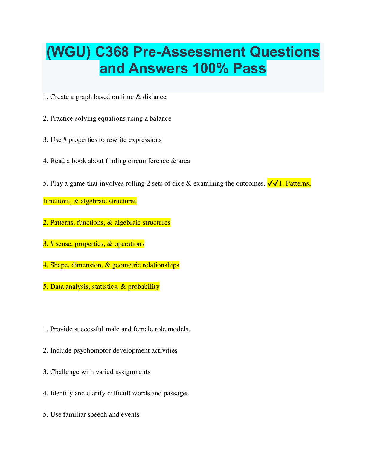 Social Sciences > QUESTIONS & ANSWERS > WGU C368 Questions and Answers with complete Solutions (All)