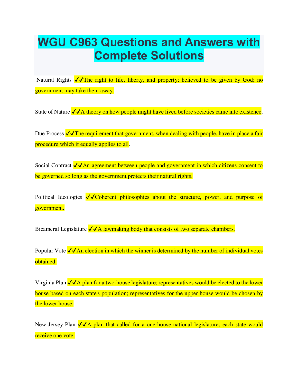 Social Sciences > QUESTIONS & ANSWERS > WGU C963 Questions and Answers with Complete Solutions (All)