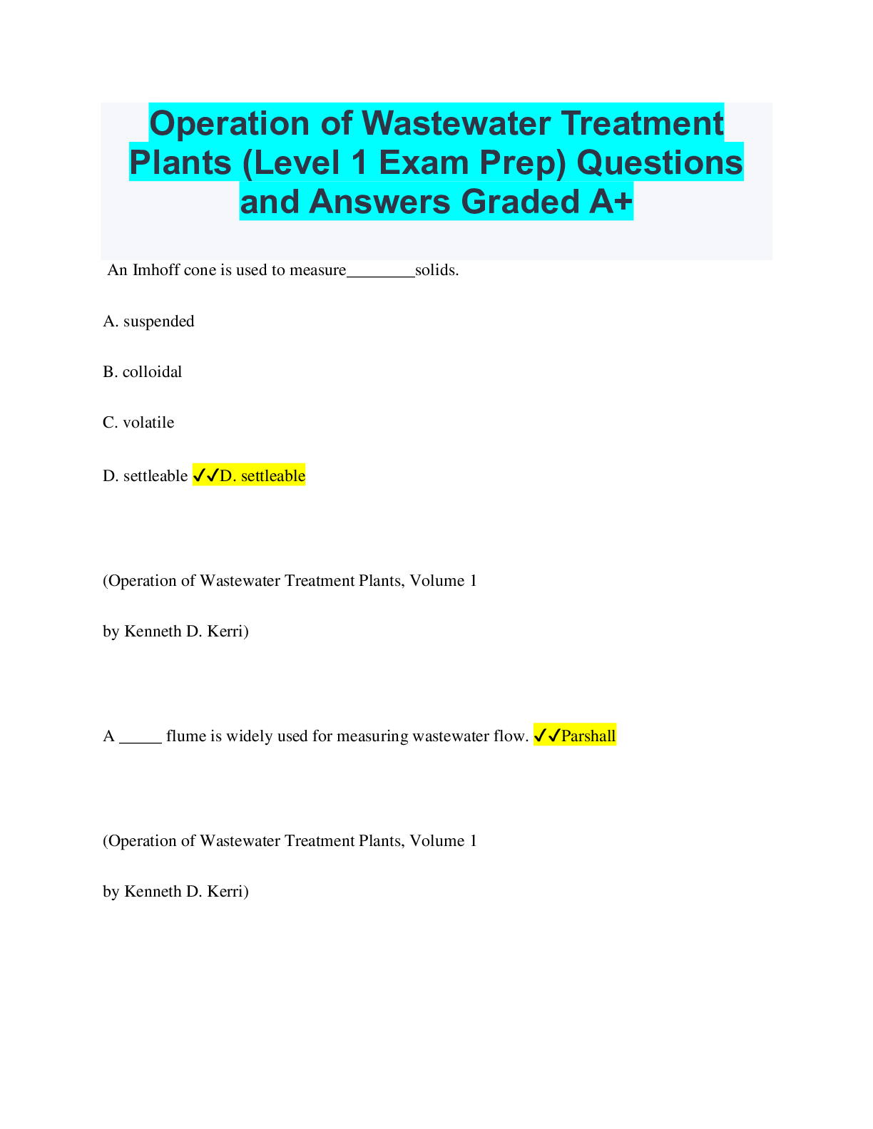 Social Sciences > QUESTIONS & ANSWERS > Wastewater Treatment Class I Questions and Answers Already Graded A (All)