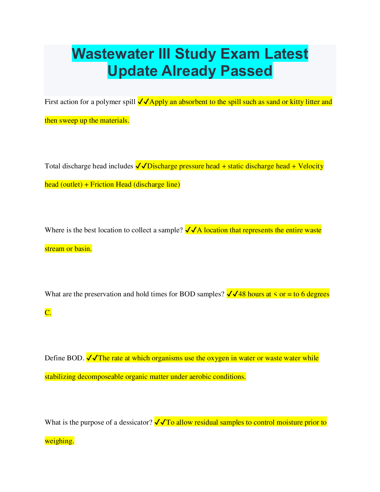 Social Sciences > QUESTIONS & ANSWERS > Wastewater III Study Exam Latest Update Already Passed (All)