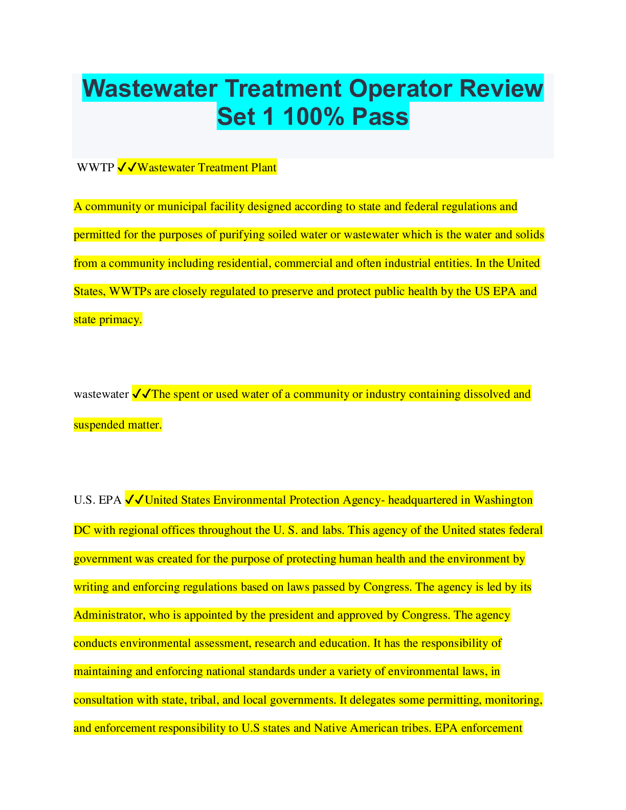 Social Sciences > QUESTIONS & ANSWERS > Waste Water Operator Certification Study Guide Grade 1 Already Passed (All)