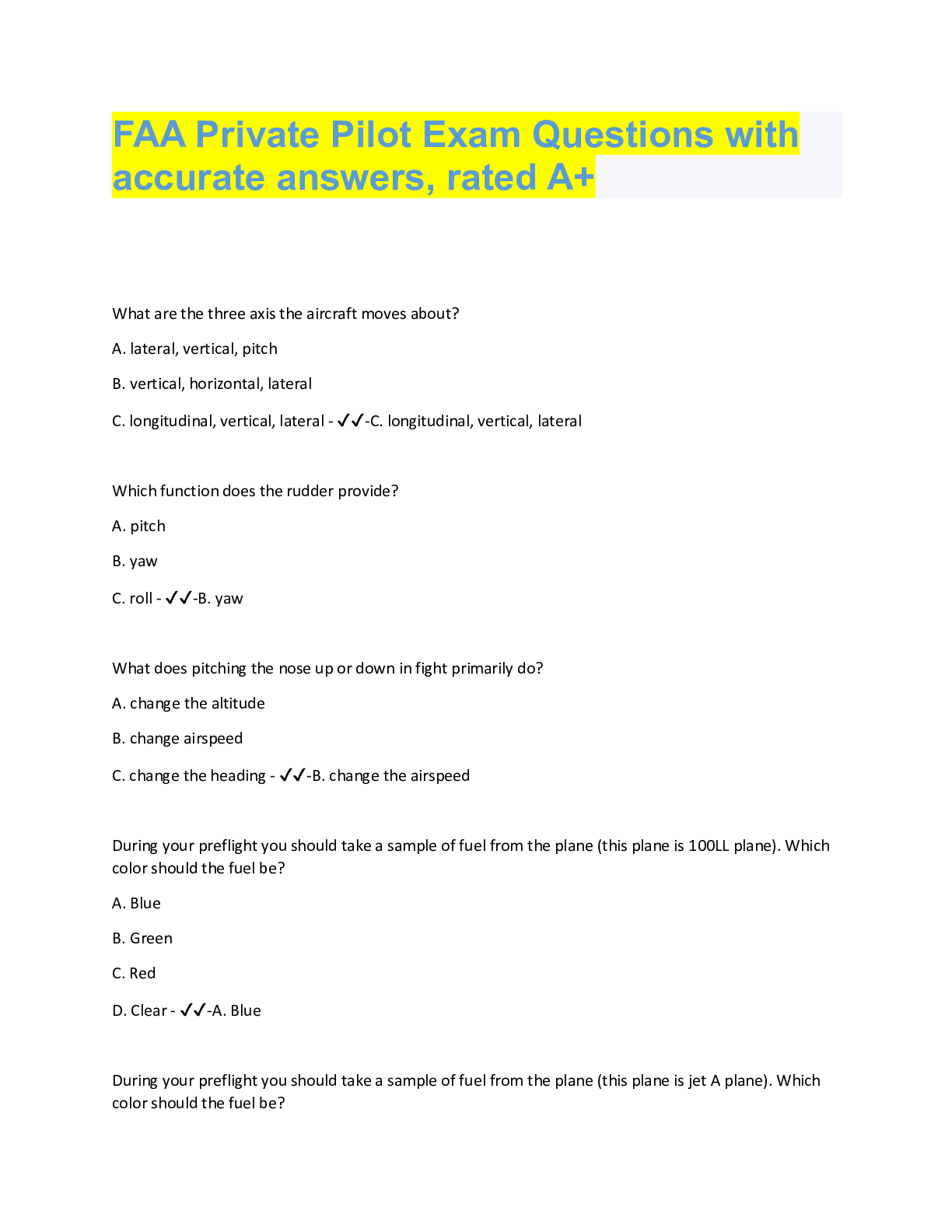Astrophysics > QUESTIONS & ANSWERS > FAA Private Pilot Exam Questions with accurate answers, rated A+ (All)