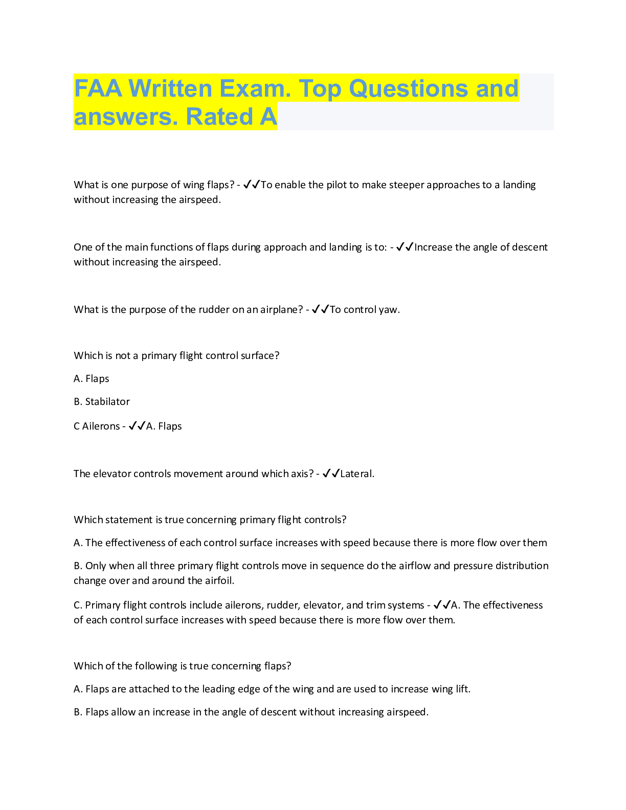 Astrophysics > QUESTIONS & ANSWERS > FAA Written Exam. Top Questions and answers. Rated A (All)