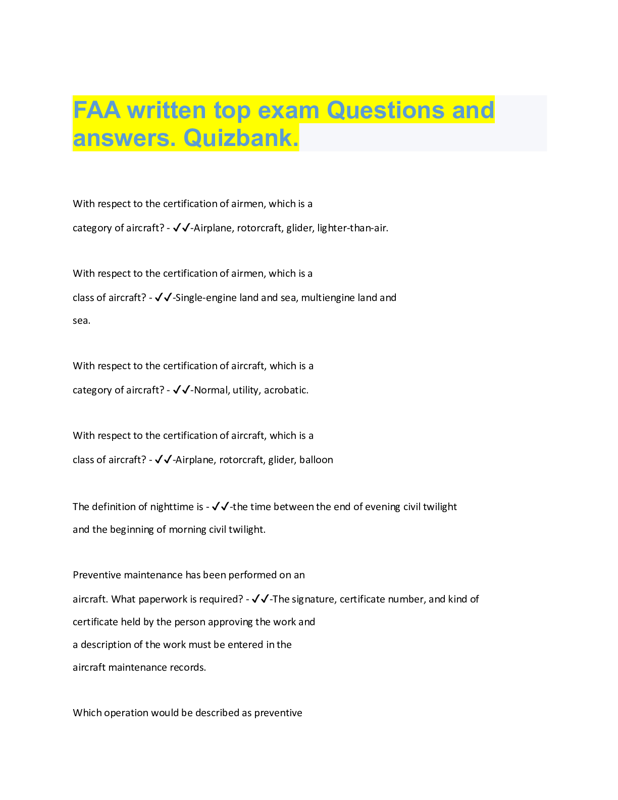 Astrophysics > QUESTIONS & ANSWERS > FAA written top exam Questions and answers. Quizbank. (All)