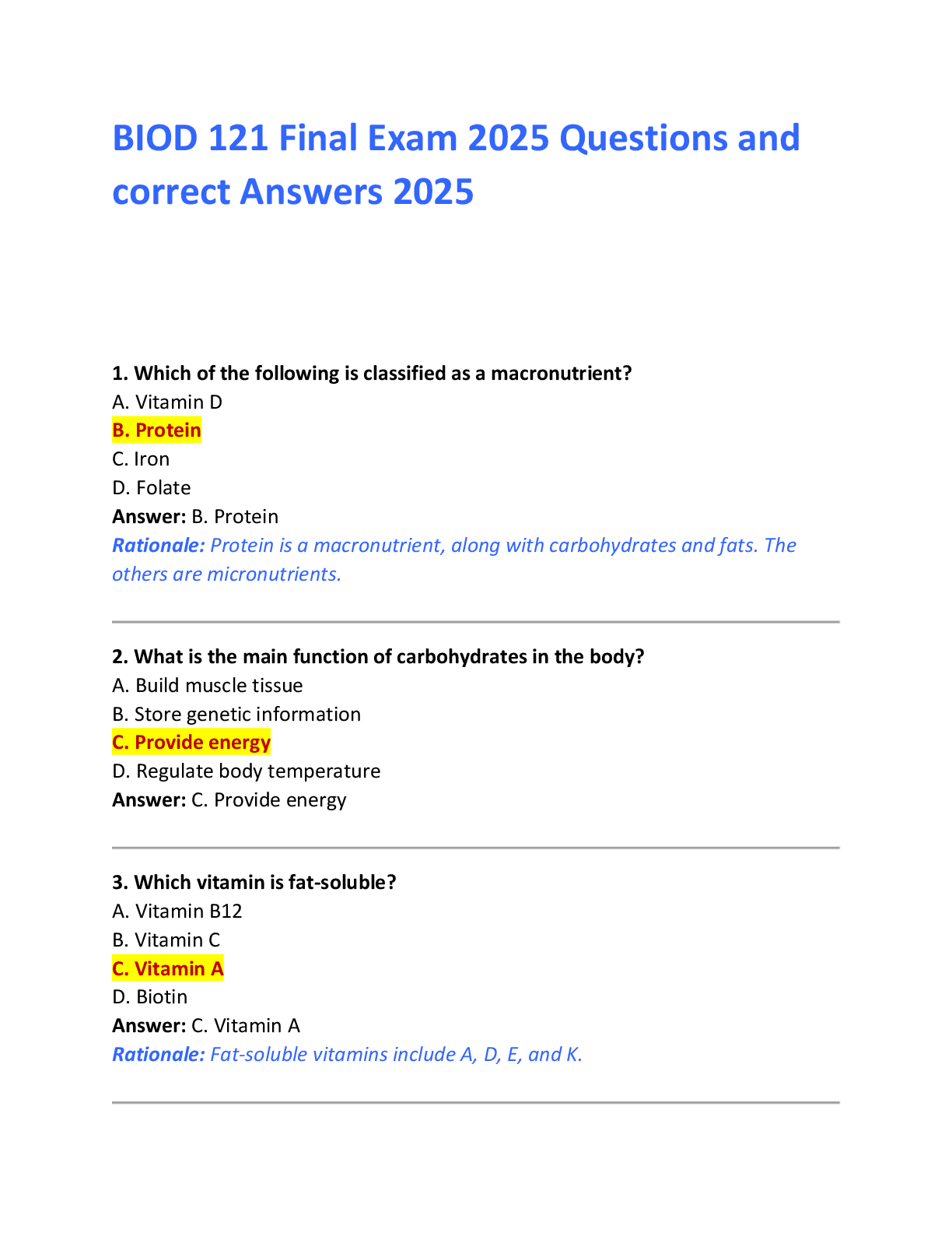 BIOD 121 > EXAM > BIOD 121 Final Exam 2025 Questions and correct Answers 2025 (All)