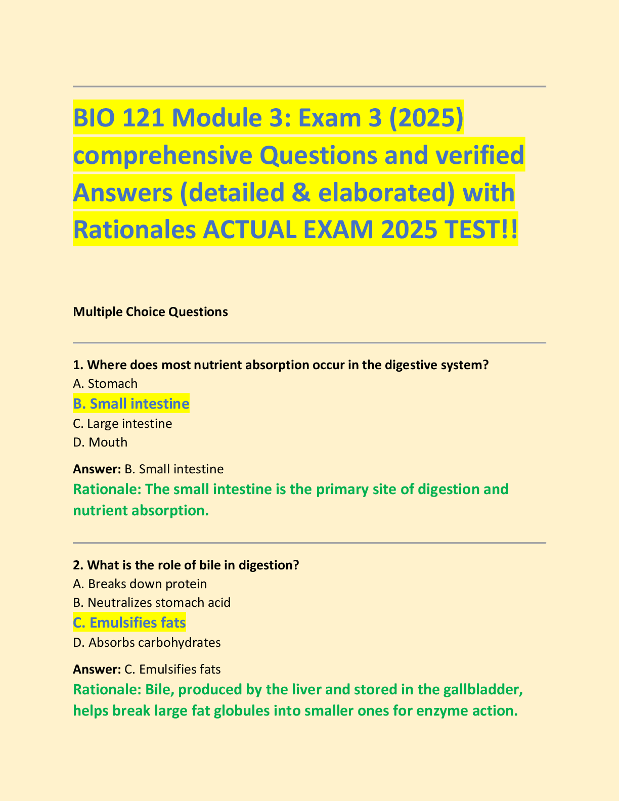 BIOD 121 > EXAM > BIO 121 Module 3: Exam 3 (2025) comprehensive Questions and verified Answers (detailed & elaborated) with Rationales ACTUAL EXAM 2025 TEST!! (All)