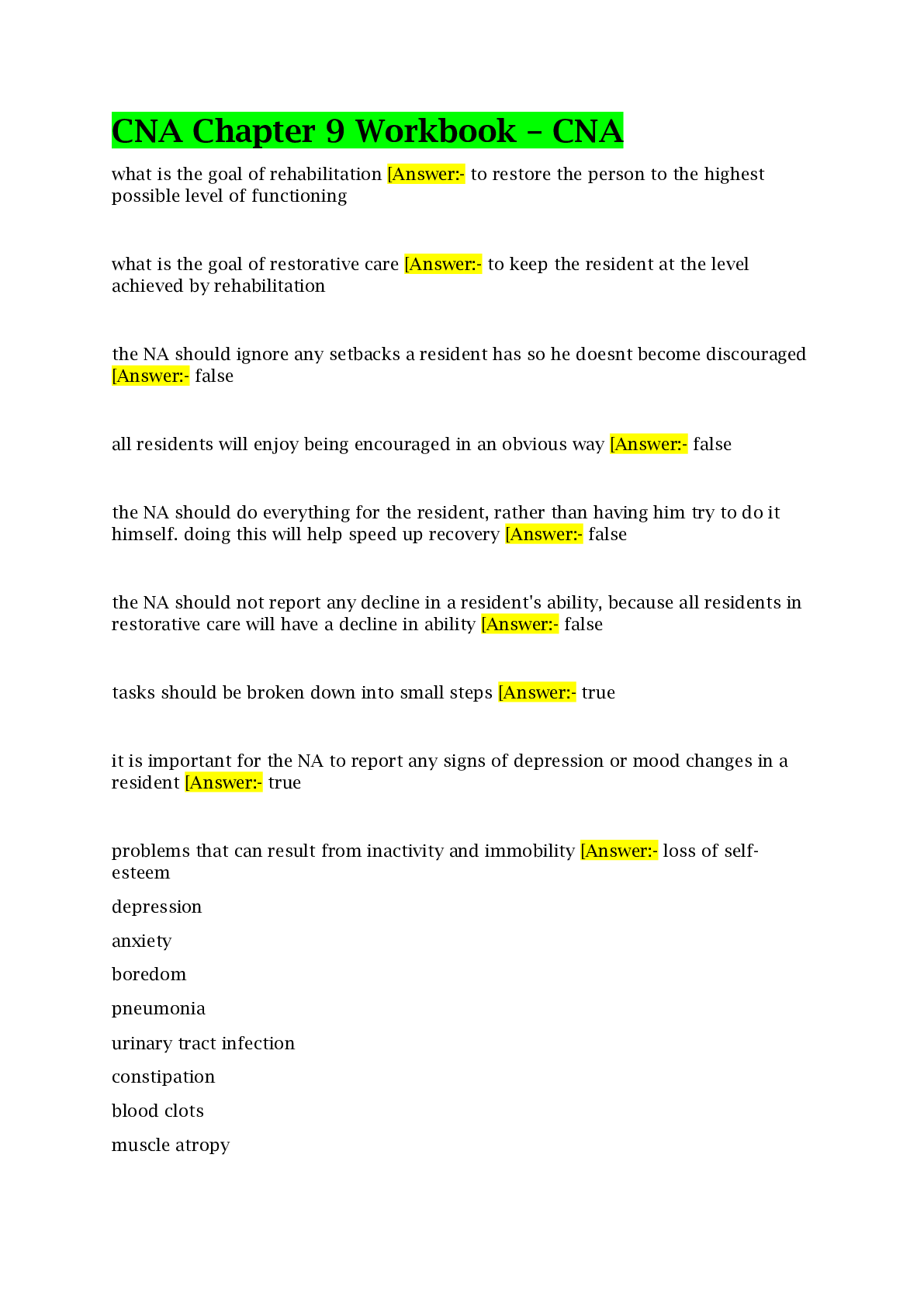CNA - Certified Nursing Assistant > EXAM > CNA Chapter 9 Workbook – CNA| Questions and Answers |Verified Answers (All)