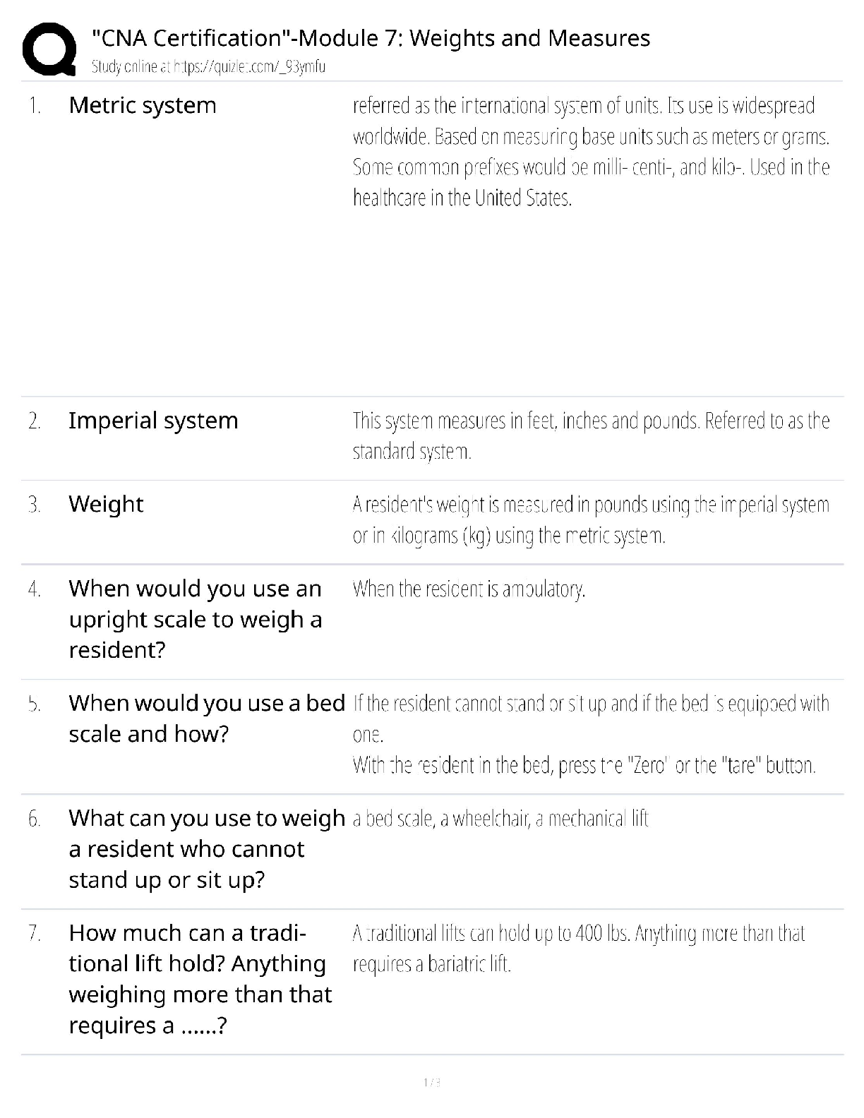 CNA - Certified Nursing Assistant > QUESTIONS & ANSWERS > CNA Certification Module 7 / Weights & Measures Exam / 2025 Update / Score 100% (All)